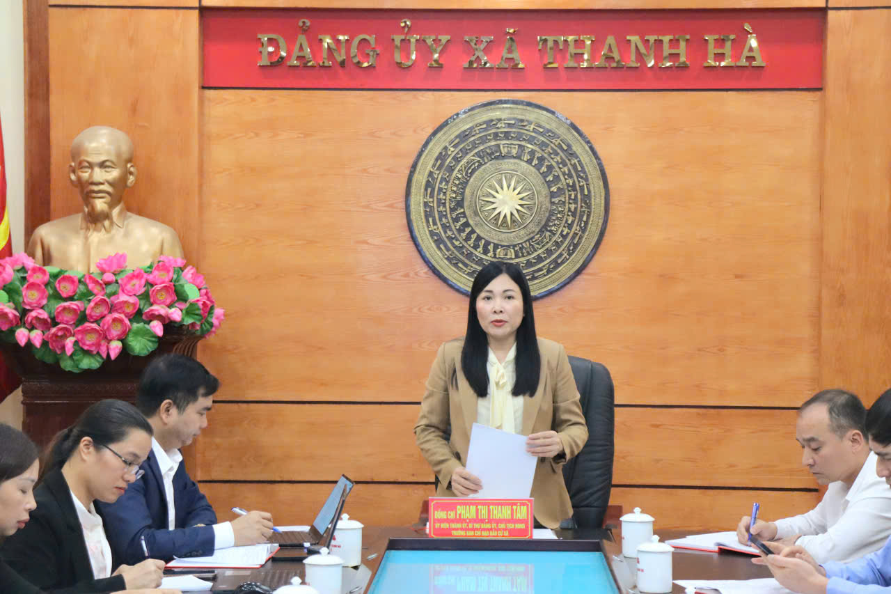 Đồng chí Phạm Thị Thanh Tâm yêu cầu toàn hệ thống chính trị của xã Thanh Hà tiếp tục phát huy tinh thần trách nhiệm, đoàn kết, phối hợp chặt chẽ, bảo đảm triển khai đầy đủ, đúng pháp luật các bước chuẩn bị, hướng tới tổ chức thành công cuộc bầu cử đại biểu Quốc hội khóa XVI và đại biểu HĐND các cấp nhiệm kỳ 2026-2031 trên địa bàn xã.