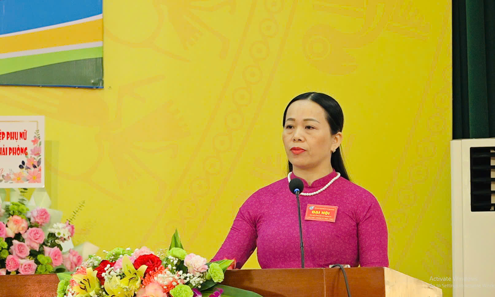 Đồng chí Phạm Thị Thúy Hải, Phó Chủ tịch Hội LHPN thành phố Hải Phòng phát biểu chỉ đạo Đại hội