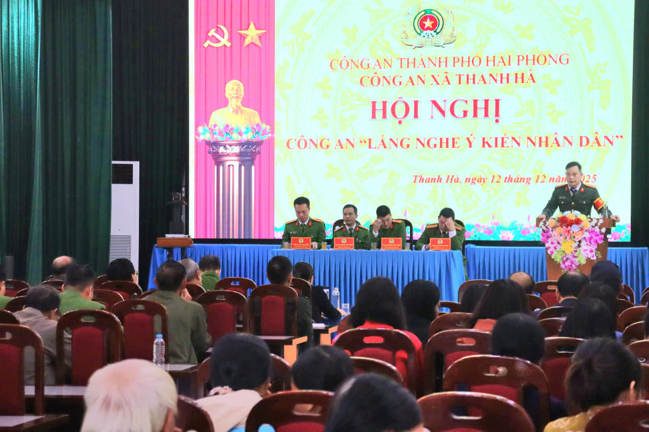 Sáng ngày 12/12/2025, Công an xã Thanh Hà tổ chức Hội nghị “Công an lắng nghe ý kiến Nhân dân” nhằm tiếp thu những ý kiến góp ý, phản ánh của cấp ủy, chính quyền, cơ quan, tổ chức và Nhân dân đối với lực lượng Công an thành phố nói chung và Công an xã Thanh Hà nói riêng. Đây là dịp để lực lượng Công an gần dân, sát dân hơn; kịp thời nắm bắt, giải quyết các kiến nghị liên quan đến công tác bảo đảm an ninh, trật tự (ANTT) trên địa bàn.