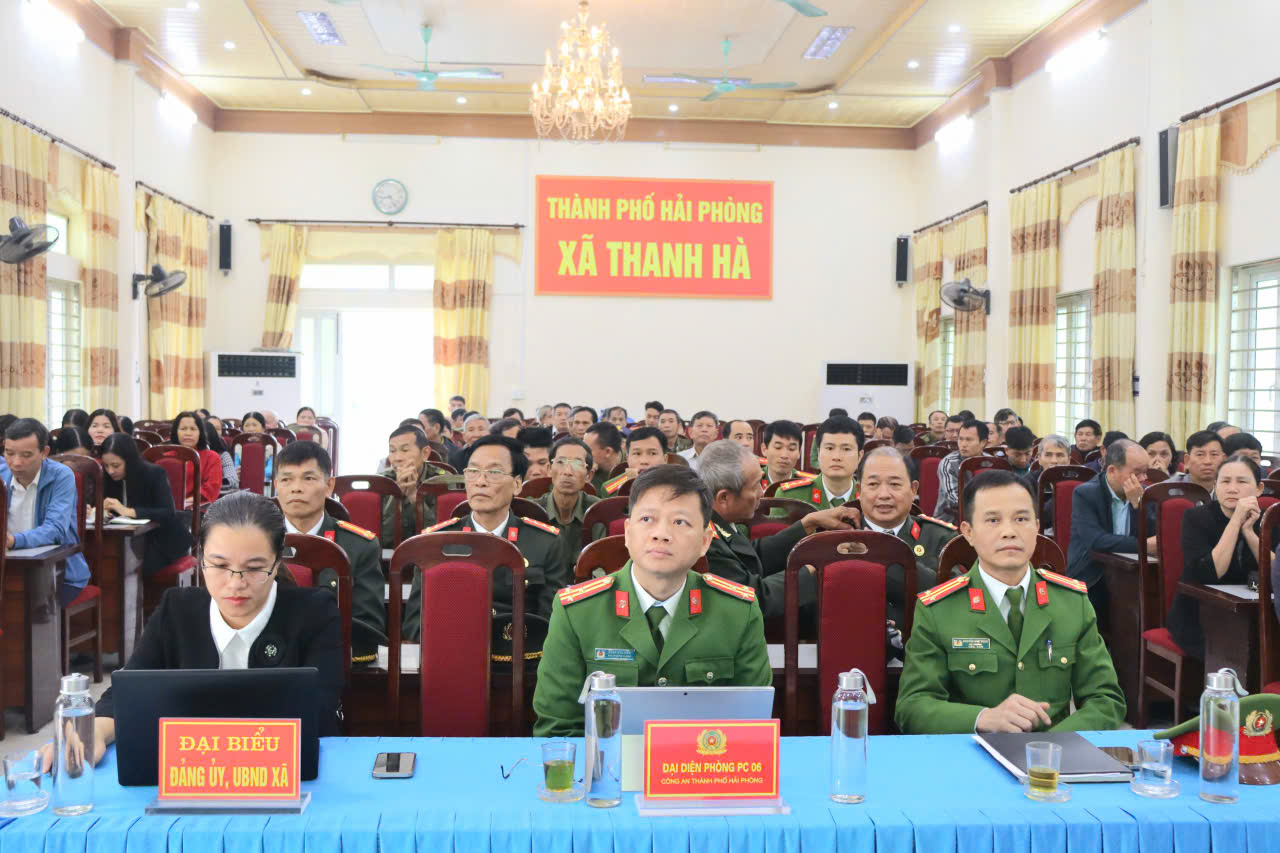 Dự hội nghị có lãnh đạo Phòng PC06, chuyên viên Phòng PC07 Công an thành phố Hải Phòng. Về phía xã có Thường trực Đảng ủy; lãnh đạo HĐND, UBND xã; đại diện Ủy ban MTTQ Việt Nam xã; đại diện các phòng, ban liên quan; Trưởng thôn, Bí thư chi bộ, Hiệu trưởng các trường học trên địa bàn; đại diện các quỹ tín dụng; Trung tâm Y tế Thanh Hà; đại diện một số doanh nghiệp; chức sắc, chức việc tôn giáo; Tổ trưởng lực lượng tham gia bảo vệ ANTT cơ sở các thôn; Đội trưởng đội tự quản PCCC và CNCH; đại diện Chi hội Cựu CAND xã.