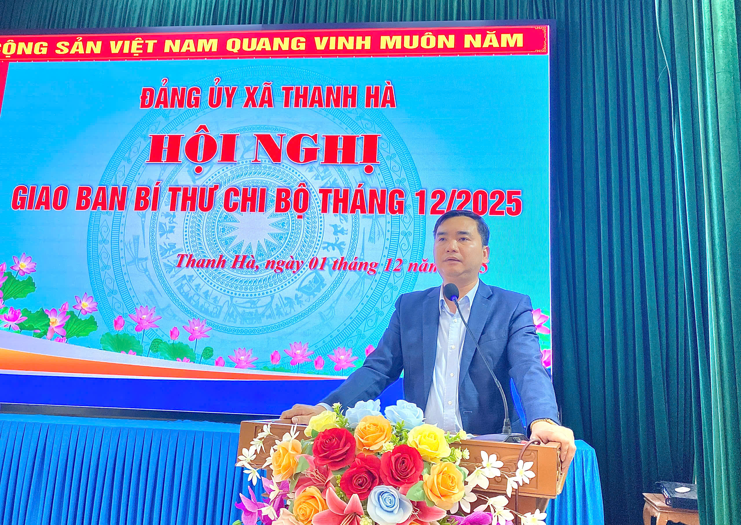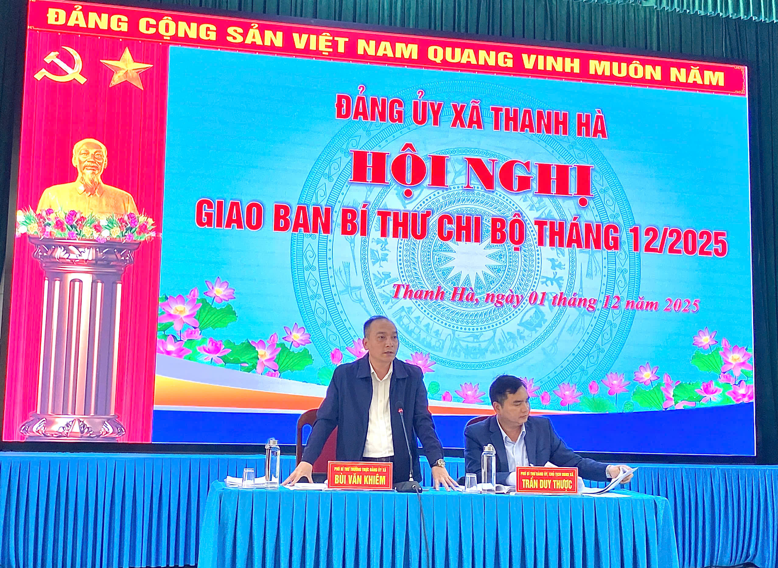 Chiều 01/12, Ban Thường vụ Đảng uỷ xã Thanh Hà tổ chức hội nghị giao ban Bí thư chi bộ tháng 12/2025. Các đồng chí: Bùi Văn Khiêm - Phó Bí thư Thường trực Đảng uỷ; Trần Duy Thược - Phó Bí thư Đảng uỷ, Chủ tịch UBND xã dự và chủ trì hội nghị.