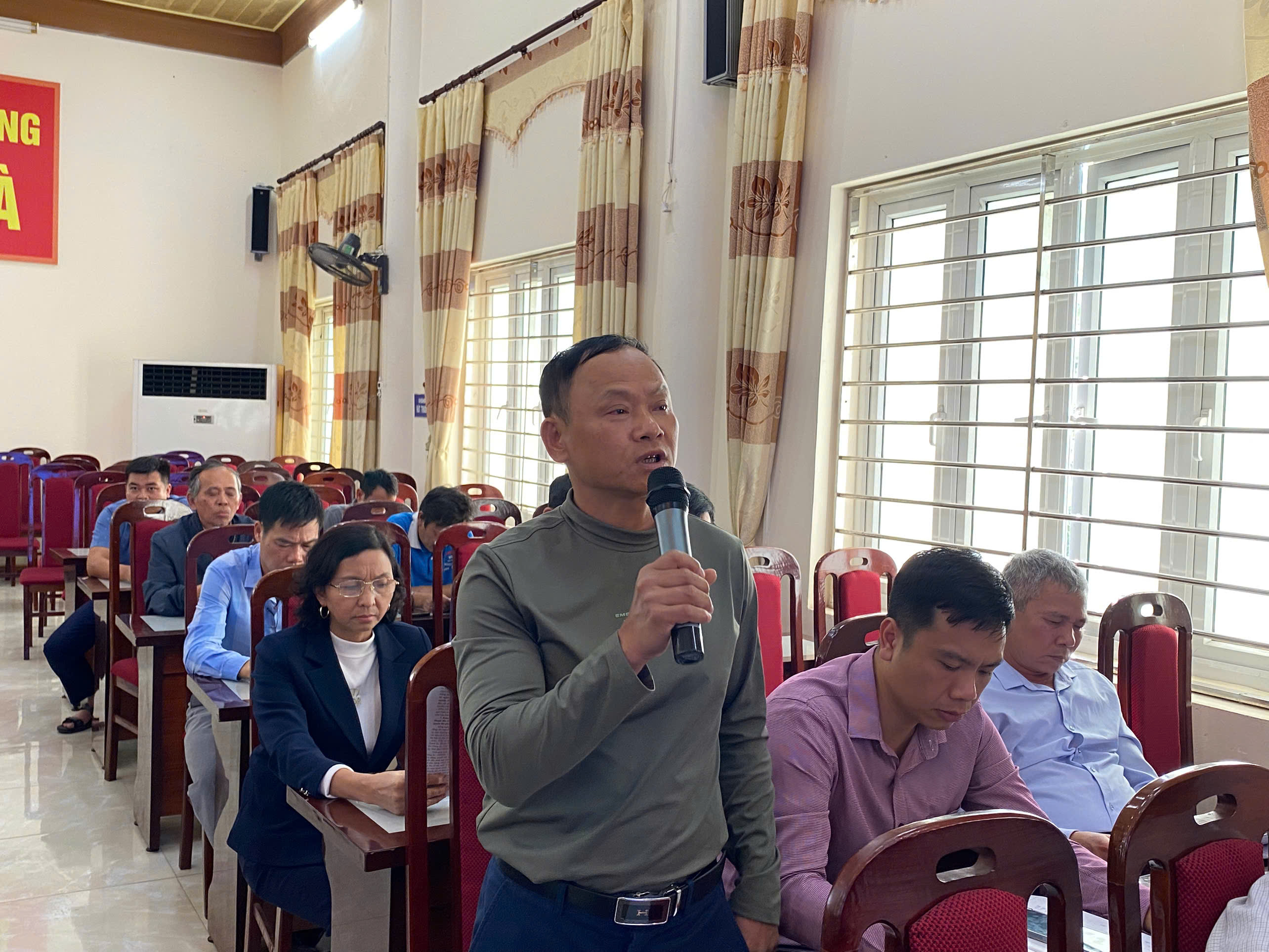 Đồng chí Trần Duy Thược - Phó Bí thư Đảng uỷ, Chủ tịch UBND xã phát biểu tại hội nghị