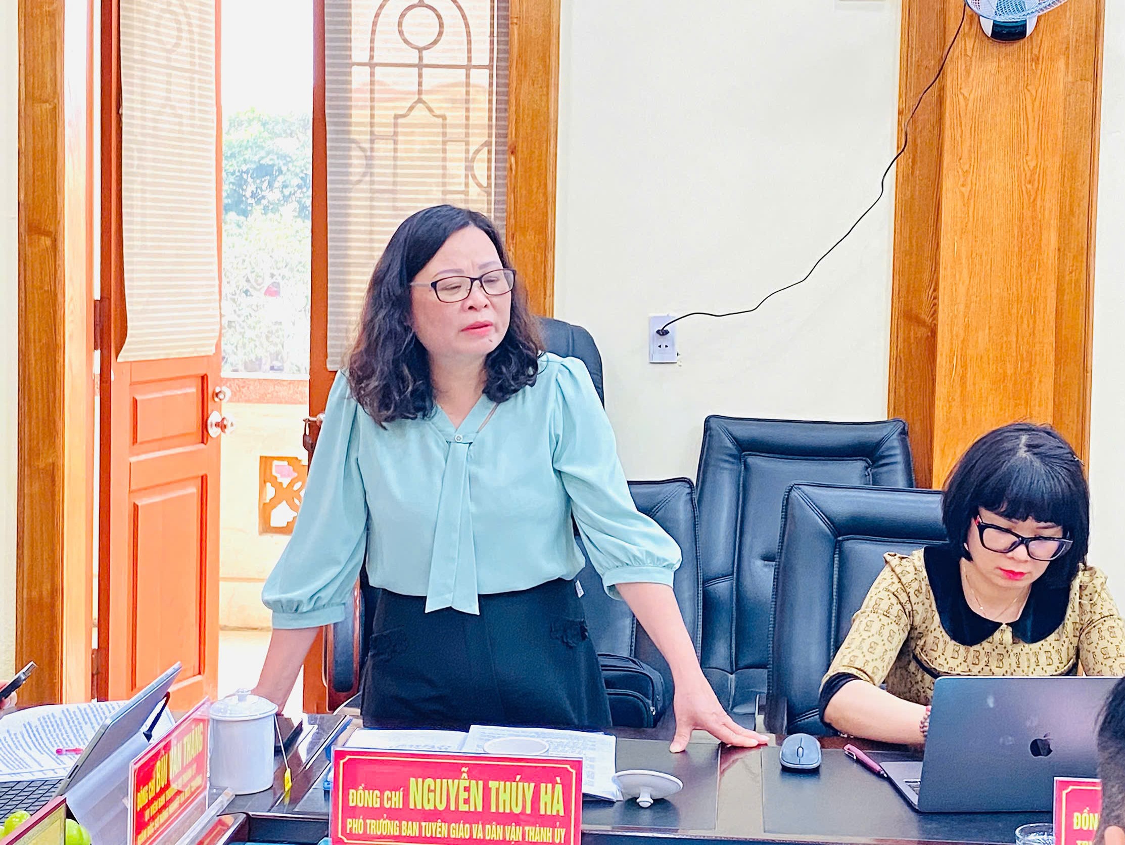 Đồng chí Nguyễn Thuý Hà, Phó Trưởng ban Tuyên giáo và Dân vận Thành uỷ phát biểu tại hội nghị