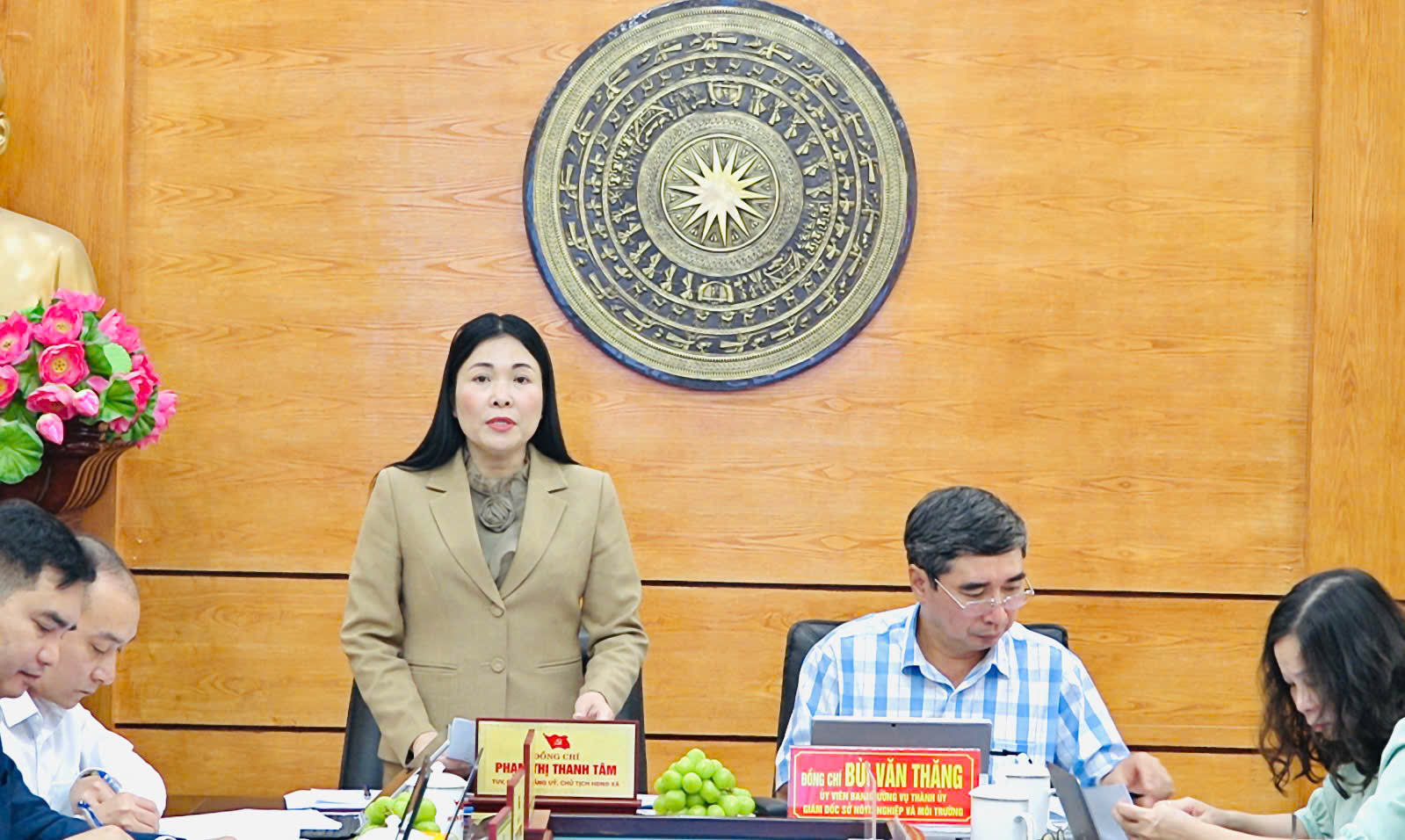 Đồng chí Phạm Thị Thanh Tâm, Uỷ viên Thành uỷ, Bí thư Đảng uỷ, Chủ tịch HĐND xã phát biểu tại hội nghị