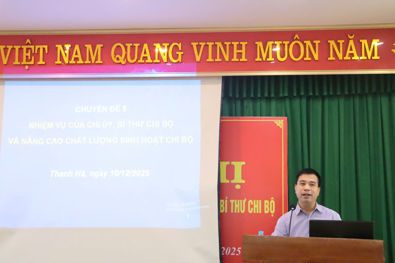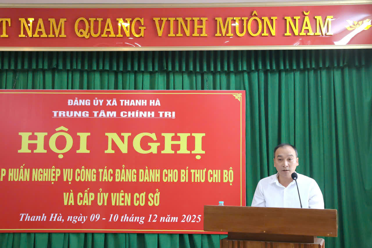 Sáng ngày 9/12/2025, Trung tâm Chính trị xã Thanh Hà tổ chức khai mạc lớp tập huấn nghiệp vụ cho đội ngũ Bí thư Chi bộ và Chi ủy viên cơ sở của 5 xã thuộc huyện Thanh Hà cũ gồm: Thanh Hà, Hà Bắc, Hà Đông, Hà Tây và Hà Nam.