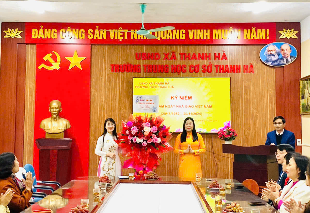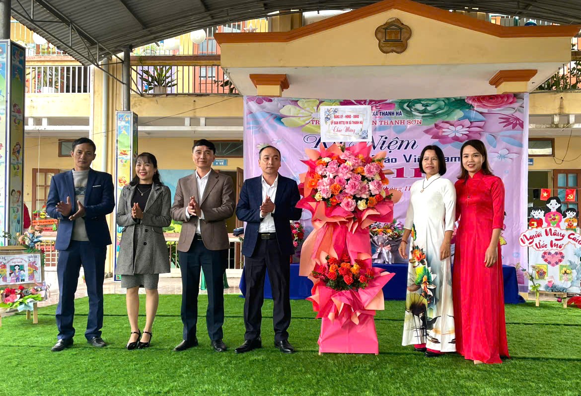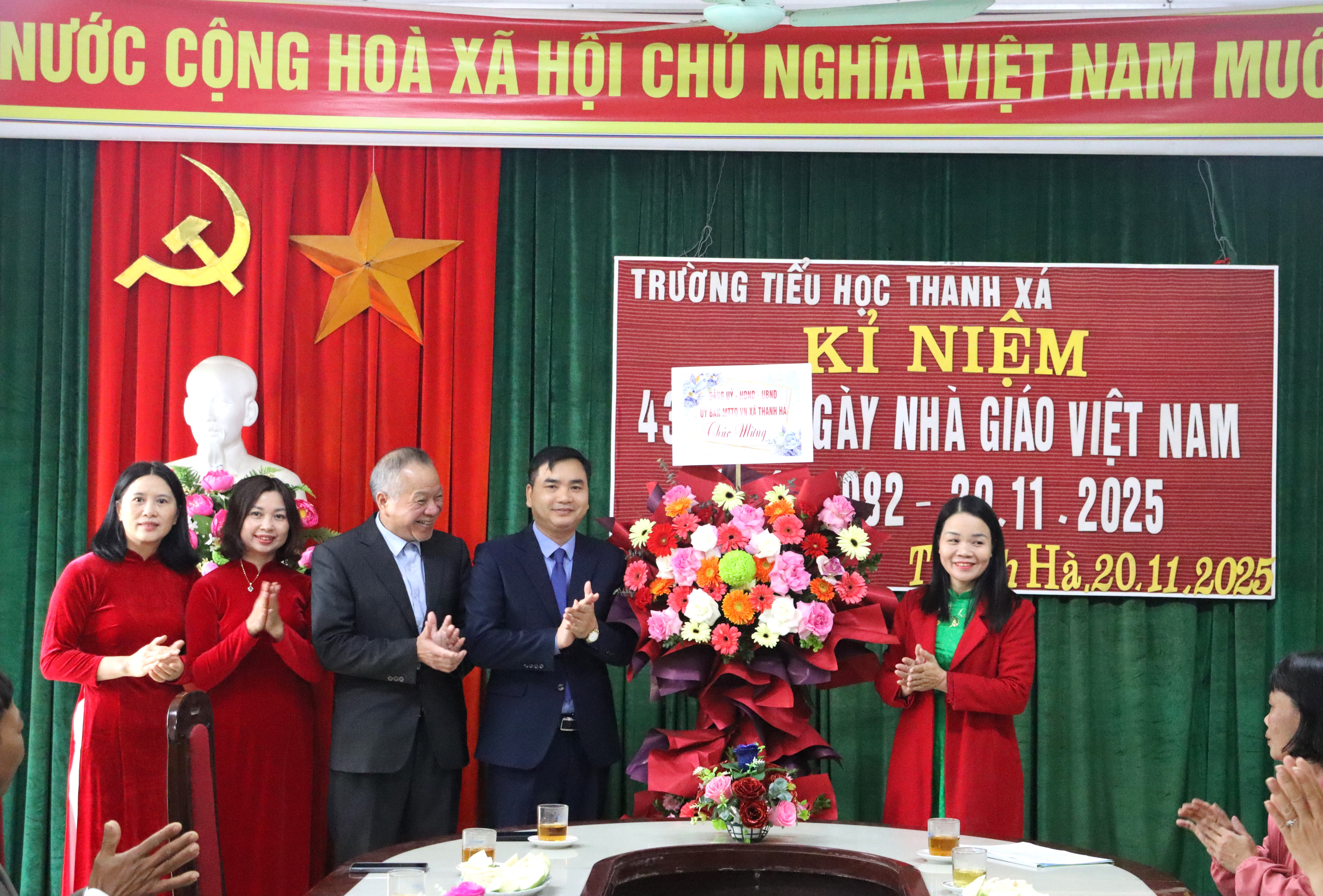 Theo đó, đồng chí Phạm Thị Thanh Tâm, Ủy viên Thành ủy, Bí thư Đảng ủy, Chủ tịch HĐND xã đã tới tặng hoa chúc mừng các thầy cô trường THCS Thanh Hà. Đồng chí Bùi Văn Khiêm, Phó Bí thư Thường trực Đảng ủy tới chúc mừng trường Mầm non Thanh sơn. Đồng chí Trần Duy Thược, Phó Bí thư Đảng ủy, Chủ tịch UBND xã tới tặng hoa chúc mừng Tiểu học Thanh Xá. Cùng đi còn có các đồng chí trong BTV Đảng uỷ, lãnh đạo UBND xã; lãnh đạo, chuyên viên phòng Văn hoá – xã hội.