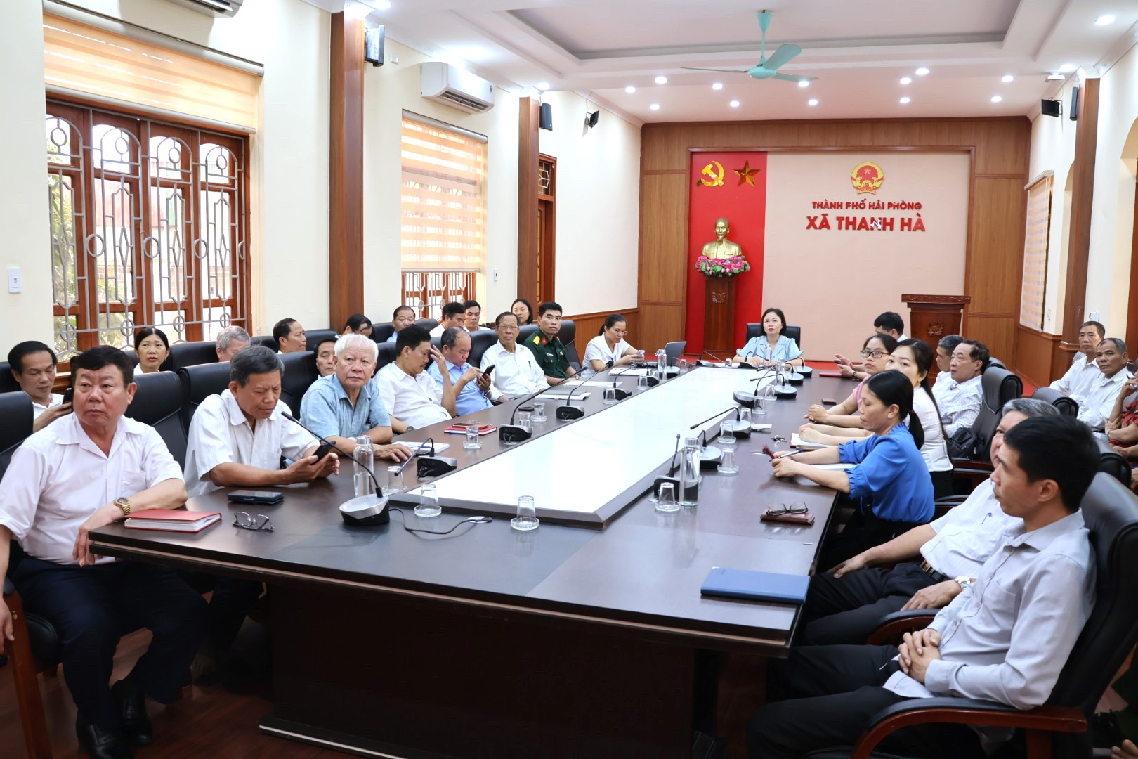 Quang cảnh hội nghị tại điểm cầu xã Thanh Hà