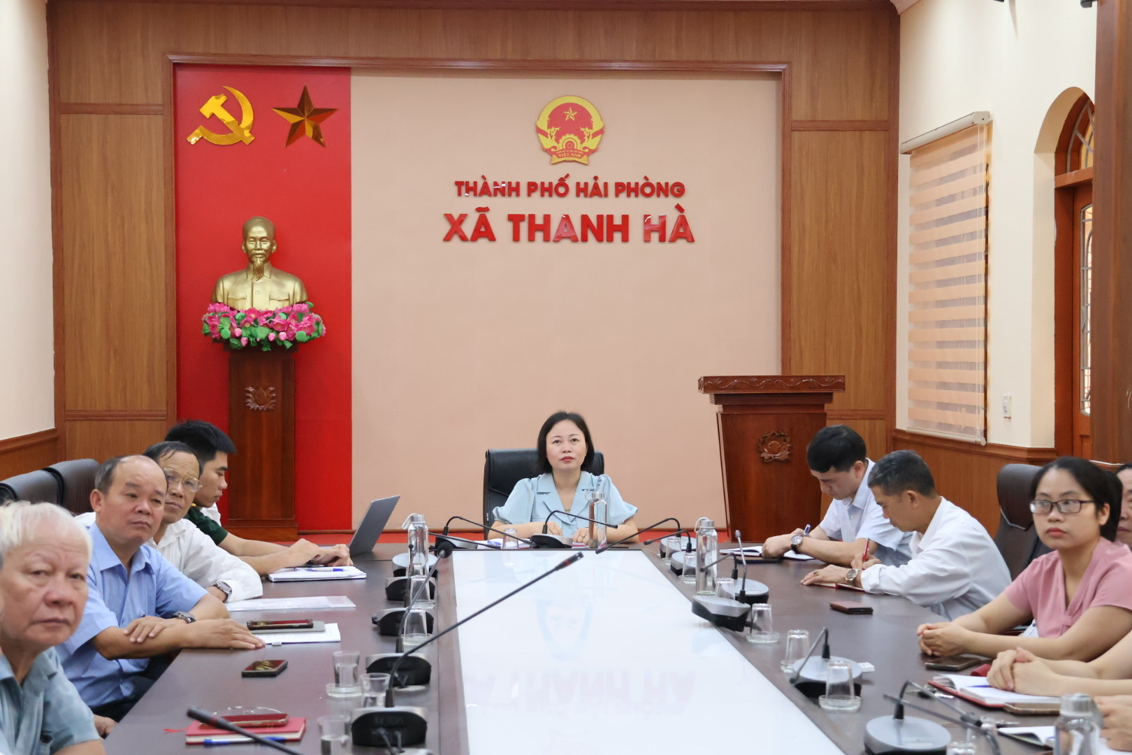 Các đại biểu dự hội nghị tại điểm cầu xã Thanh Hà