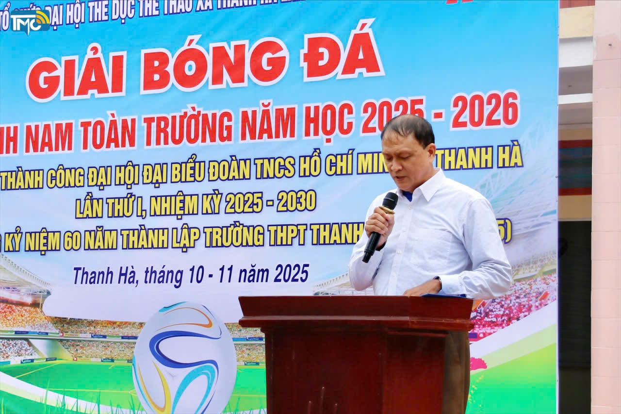 Phát biểu khai mạc giải đấu, Thầy giáo Nguyễn Đình Thương, Phó bí thư Chi bộ, Phó Hiệu trưởng nhà trường nhấn mạnh: Giải bóng đá học sinh nam là một hoạt động thể thao có ý nghĩa thiết thực trong phong trào thi đua rèn luyện thân thể theo gương Bác Hồ vĩ đại. Giải đấu không chỉ giúp học sinh tăng cường sức khỏe, phát triển thể chất mà còn là cơ hội để các em giao lưu, học hỏi lẫn nhau, phát huy tinh thần đoàn kết, trung thực, cao thượng và ý chí vượt khó. Đồng chí tin tưởng rằng với sự chuẩn bị chu đáo của Ban Tổ chức, tinh thần thi đấu hết mình của các vận động viên và sự cổ vũ nhiệt tình của cổ động viên, giải đấu năm nay sẽ thành công tốt đẹp, góp phần tạo khí thế sôi nổi hướng tới kỷ niệm 60 năm ngày thành lập Trường THPT Thanh Hà và chào mừng thành công Đại hội đại biểu Đoàn TNCS Hồ Chí Minh xã Thanh Hà lần thứ I, nhiệm kỳ 2025- 2030.
