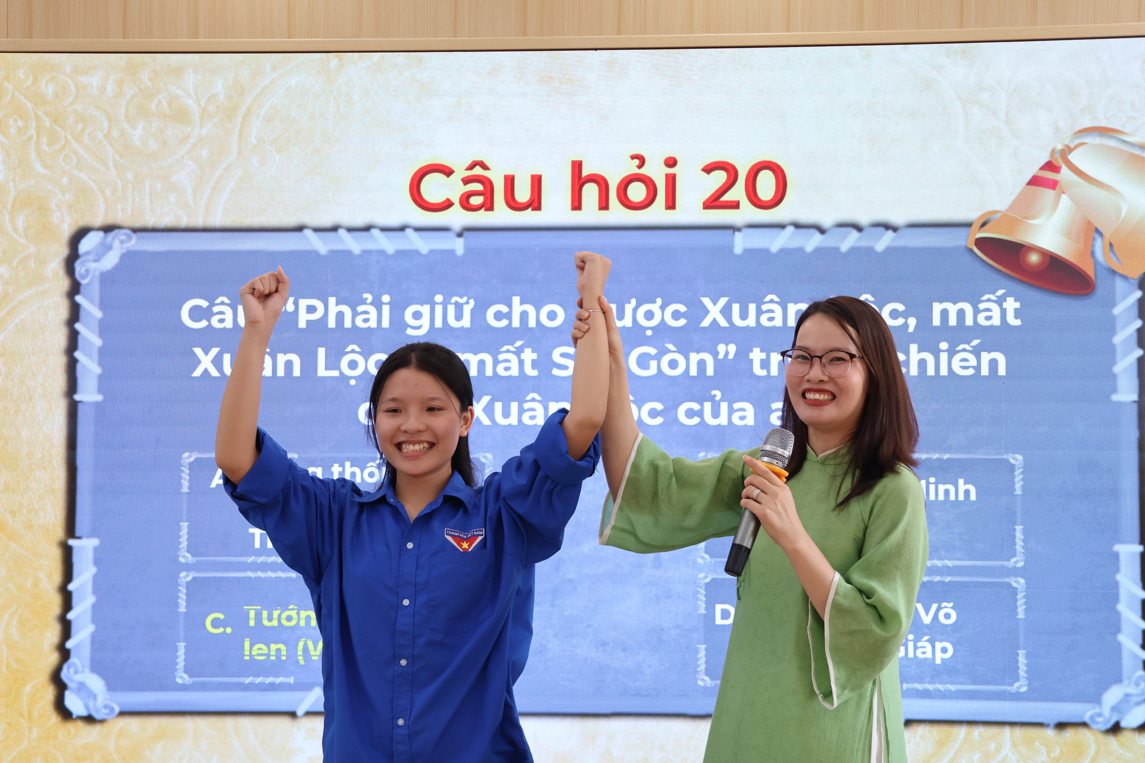 Trong khuôn khổ chương trình, cuộc thi Rung chuông vàng “Tìm hiểu lịch sử nhân kỷ niệm 51 năm Ngày Giải phóng miền Nam, thống nhất đất nước (30/4/1975 – 30/4/2026)” đã diễn ra sôi nổi, thu hút đông đảo đoàn viên, thanh niên tham gia. Các thí sinh đã lần lượt trải qua 20 câu hỏi liên quan đến những sự kiện lịch sử, nhân vật tiêu biểu và ý nghĩa của chiến thắng 30/4/1975. Không khí hội thi diễn ra hào hứng, kịch tính qua từng câu hỏi, đặc biệt ở những câu hỏi cuối cùng đòi hỏi sự hiểu biết sâu sắc và bản lĩnh của người chơi. Kết thúc cuộc thi, Ban Tổ chức đã trao giải thưởng cho 06 đoàn viên, thanh niên có thành tích xuất sắc, đồng thời biểu dương tinh thần học tập, tìm hiểu lịch sử, góp phần giáo dục truyền thống yêu nước, lòng tự hào dân tộc cho thế hệ trẻ.