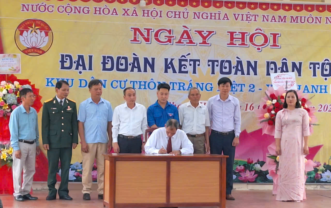 Các đồng chí Lãnh đạo xã và thôn chứng kiến các hội đoàn thể trong thôn kí kết phối hợp thực hiện tốt các phong trào thi đua, cuộc vận động năm 2026
