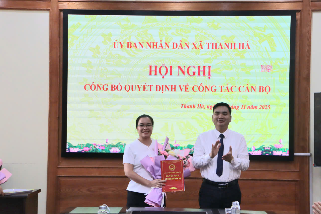 Chiều ngày 12/11/2025, Ủy ban nhân dân xã Thanh Hà tổ chức hội nghị công bố các quyết định về công tác cán bộ.