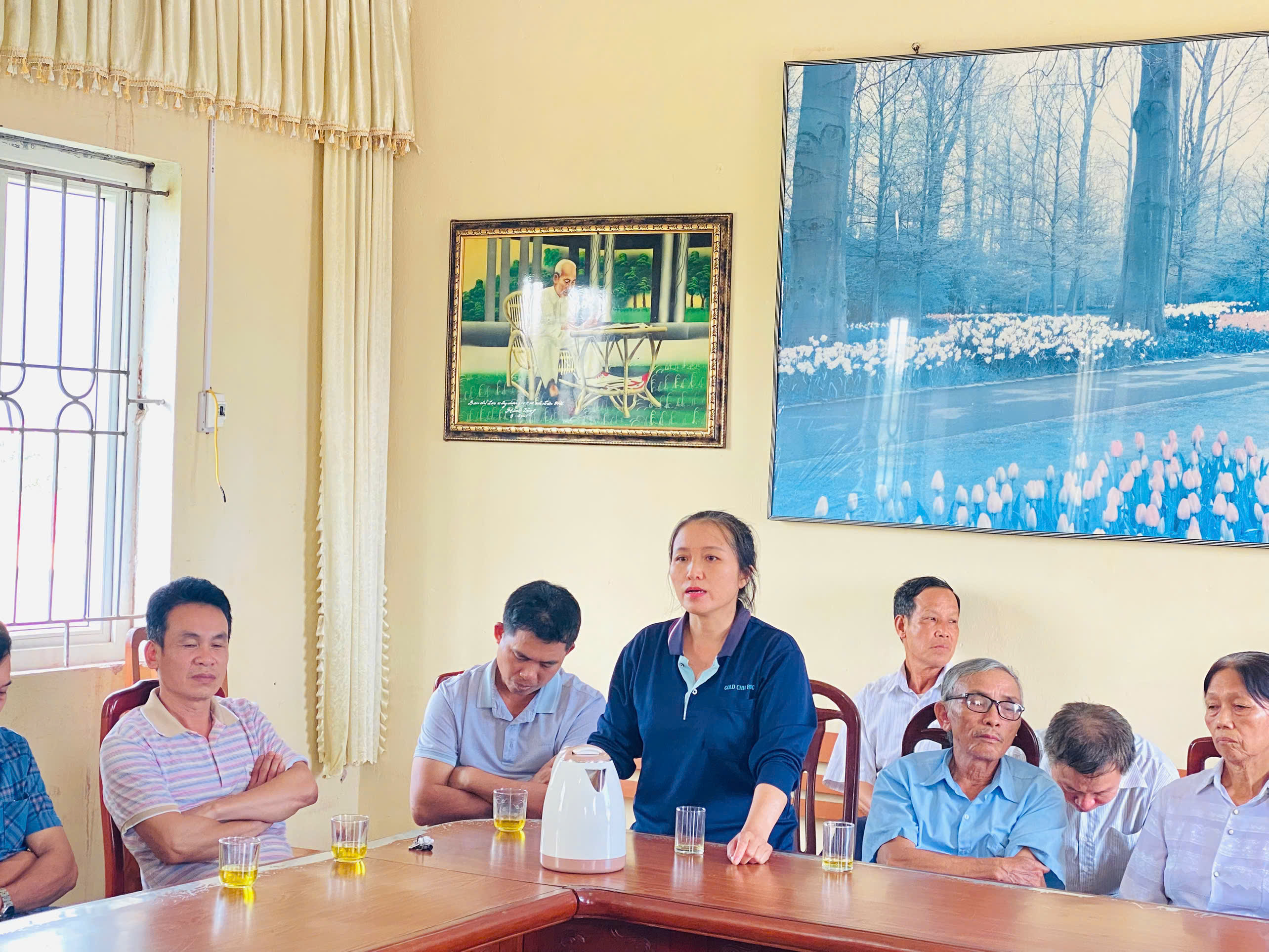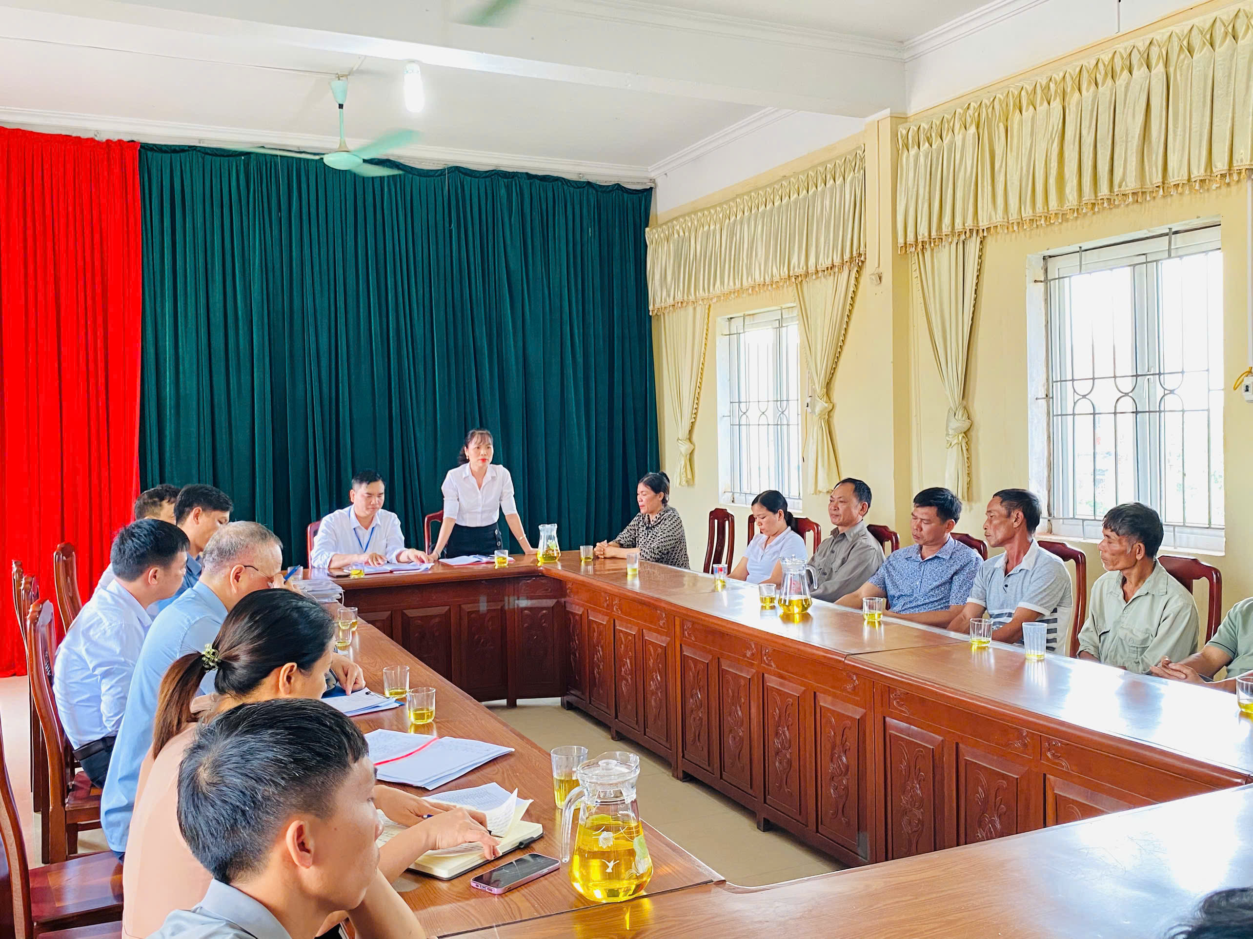 Đồng chí Vũ Thị Hảo, Phó Chủ tịch UBND xã phát biểu tại buổi làm việc