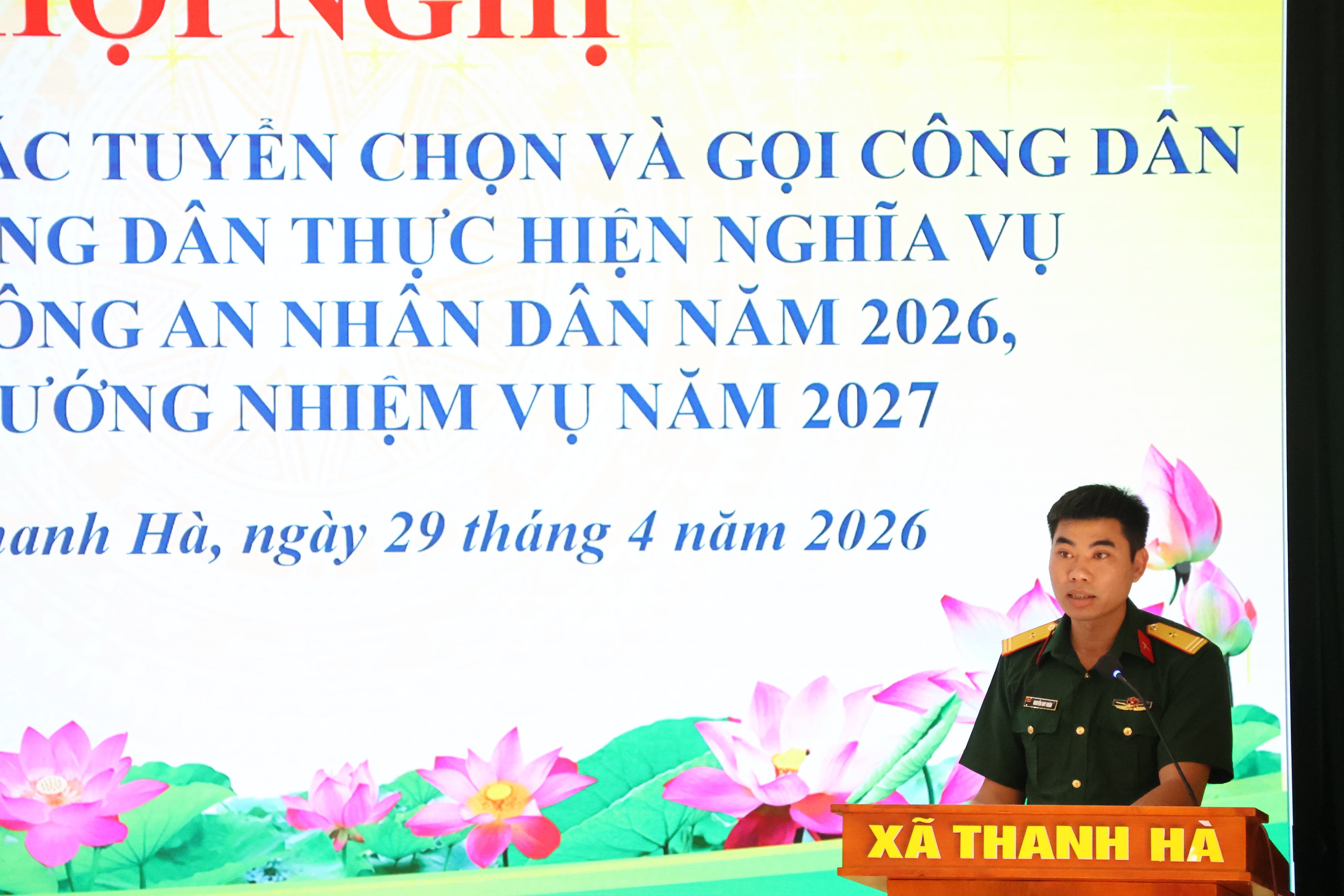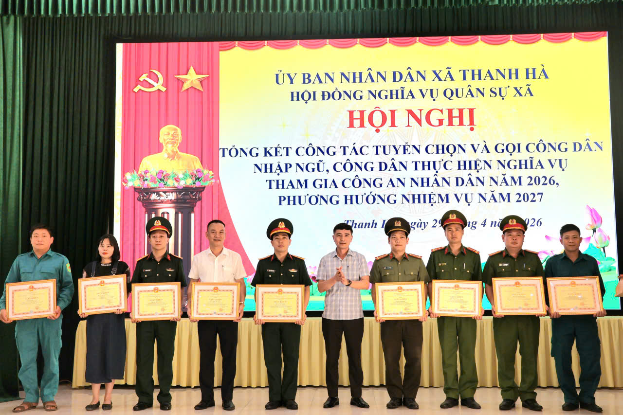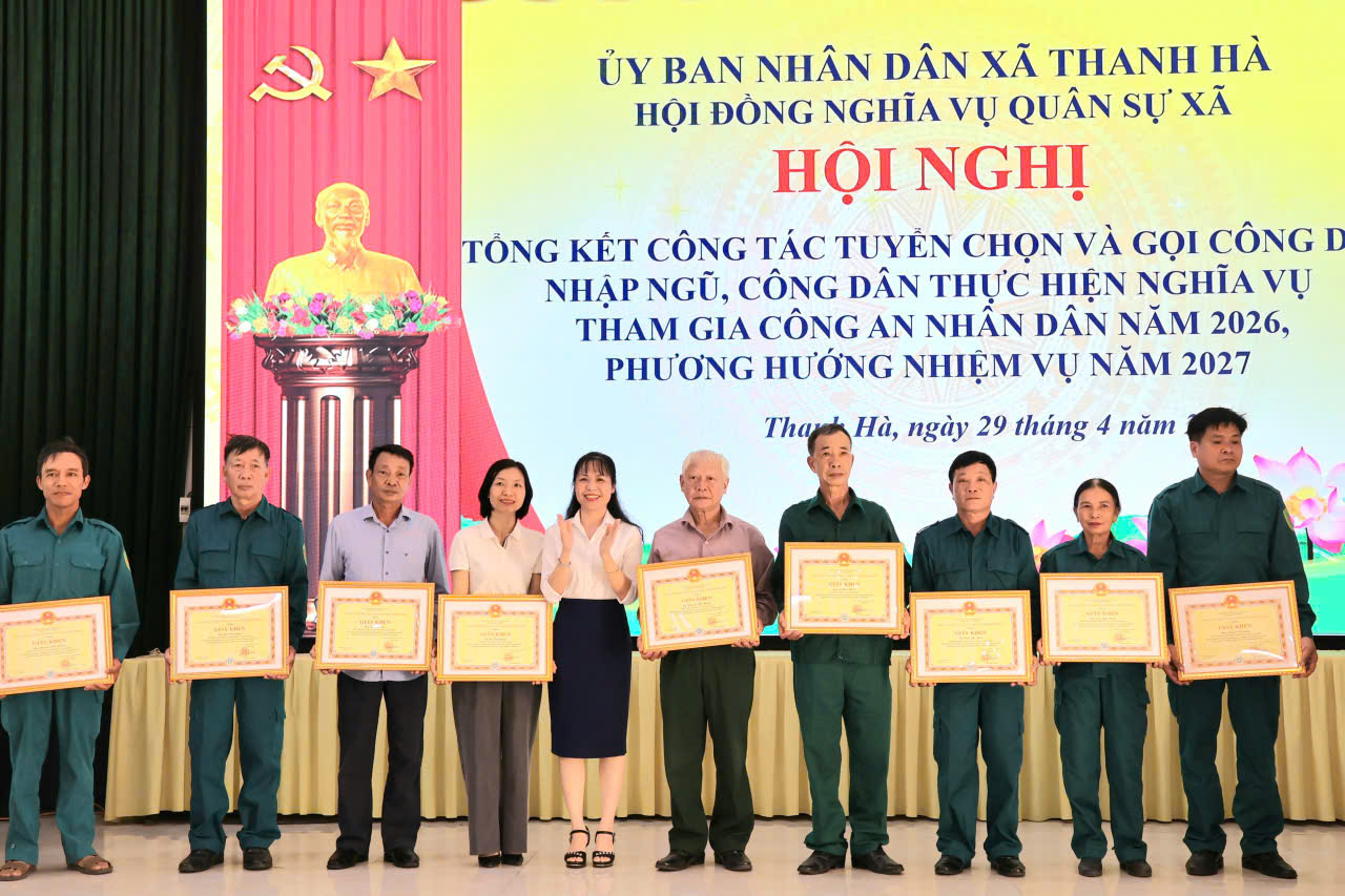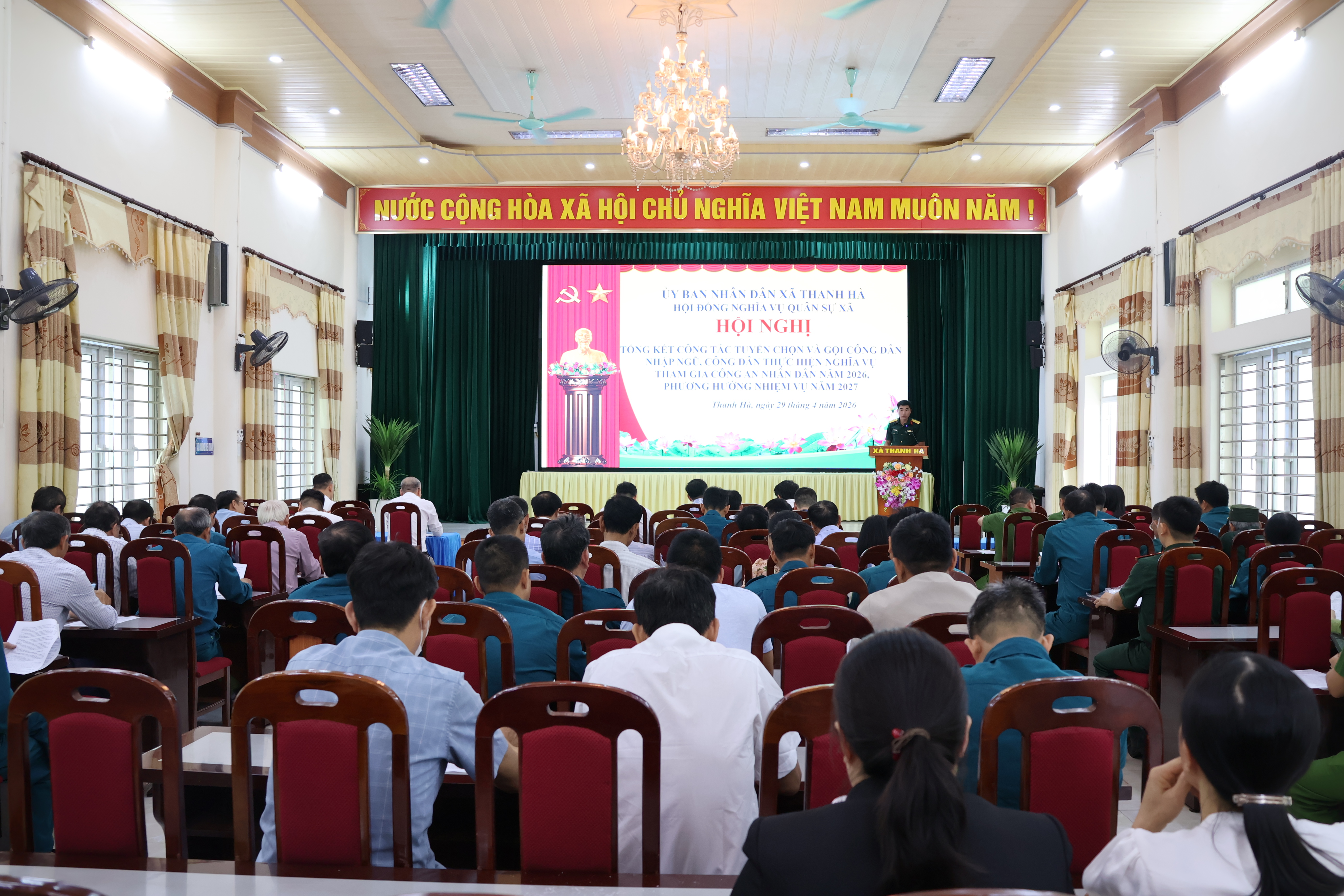 Sáng ngày 29/4/2026, UBND xã Thanh Hà tổ chức hội nghị tổng kết công tác tuyển chọn và gọi công dân nhập ngũ, công dân thực hiện nghĩa vụ tham gia Công an nhân dân năm 2026; triển khai phương hướng, nhiệm vụ năm 2027.