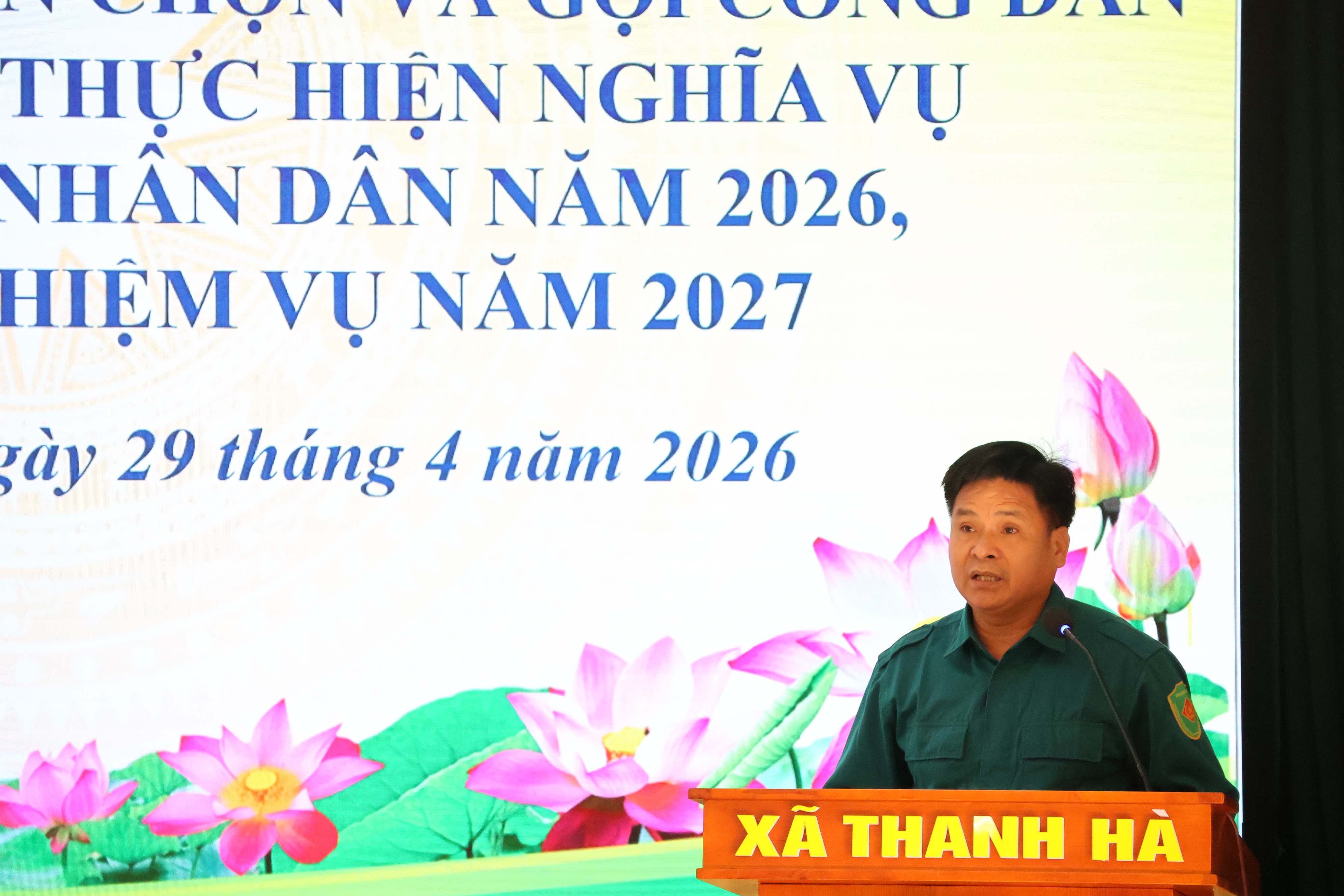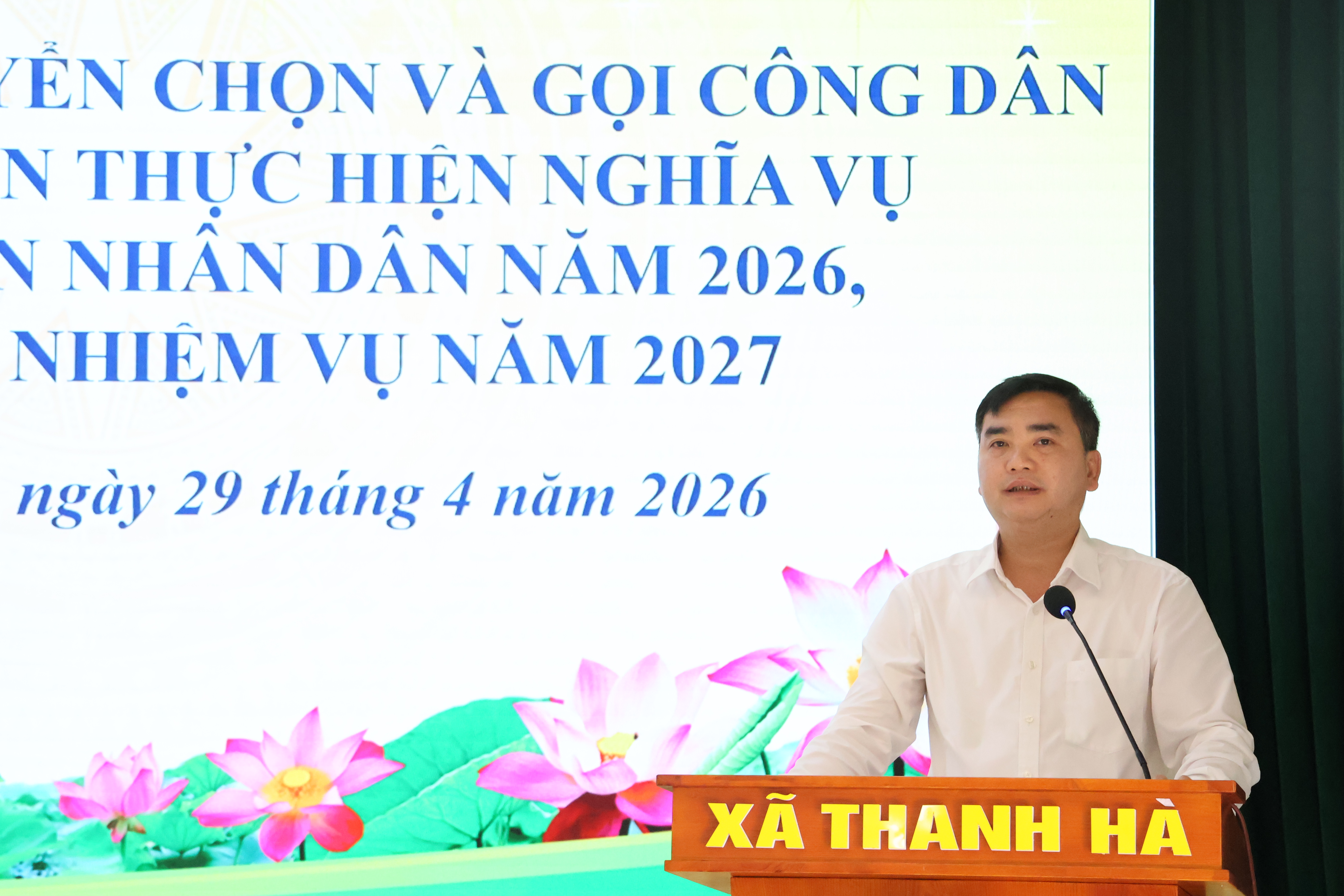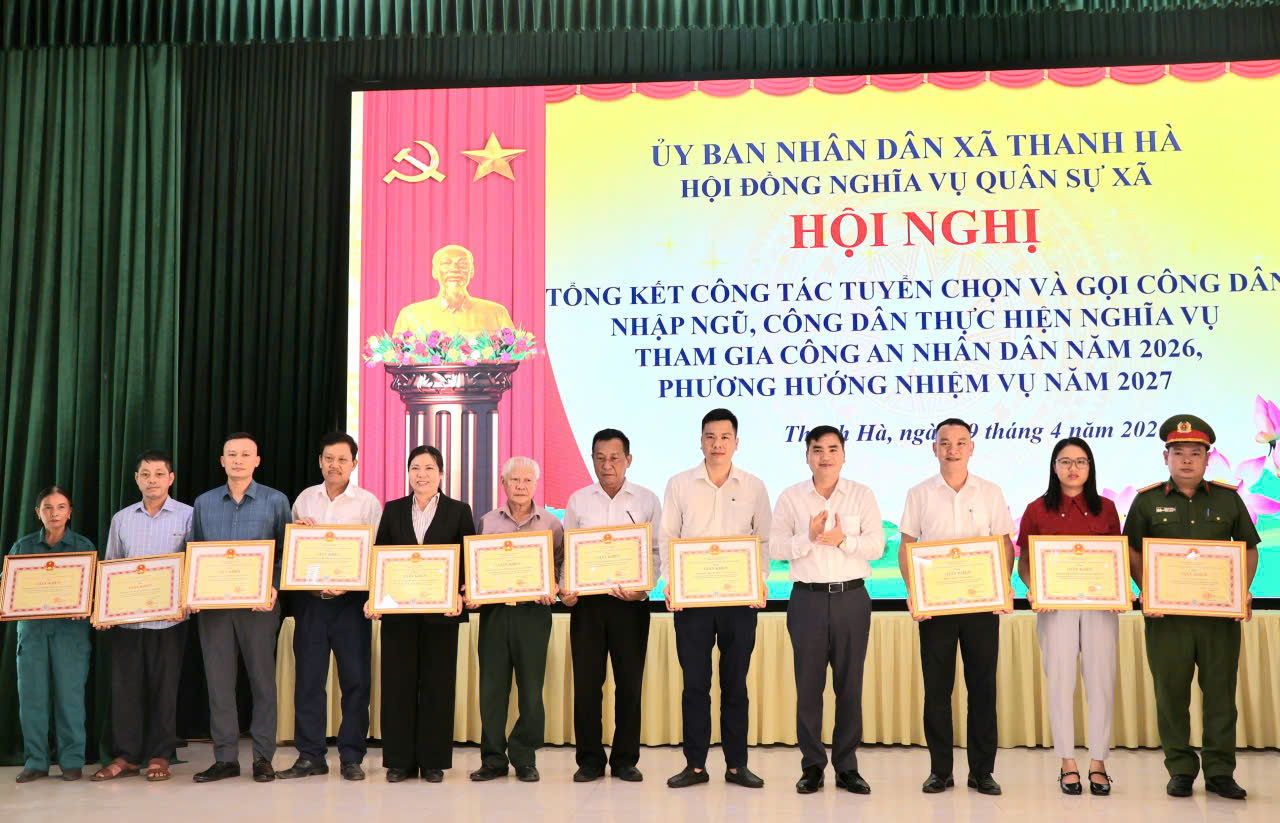 Sáng ngày 29/4/2026, UBND xã Thanh Hà tổ chức hội nghị tổng kết công tác tuyển chọn và gọi công dân nhập ngũ, công dân thực hiện nghĩa vụ tham gia Công an nhân dân năm 2026; triển khai phương hướng, nhiệm vụ năm 2027.