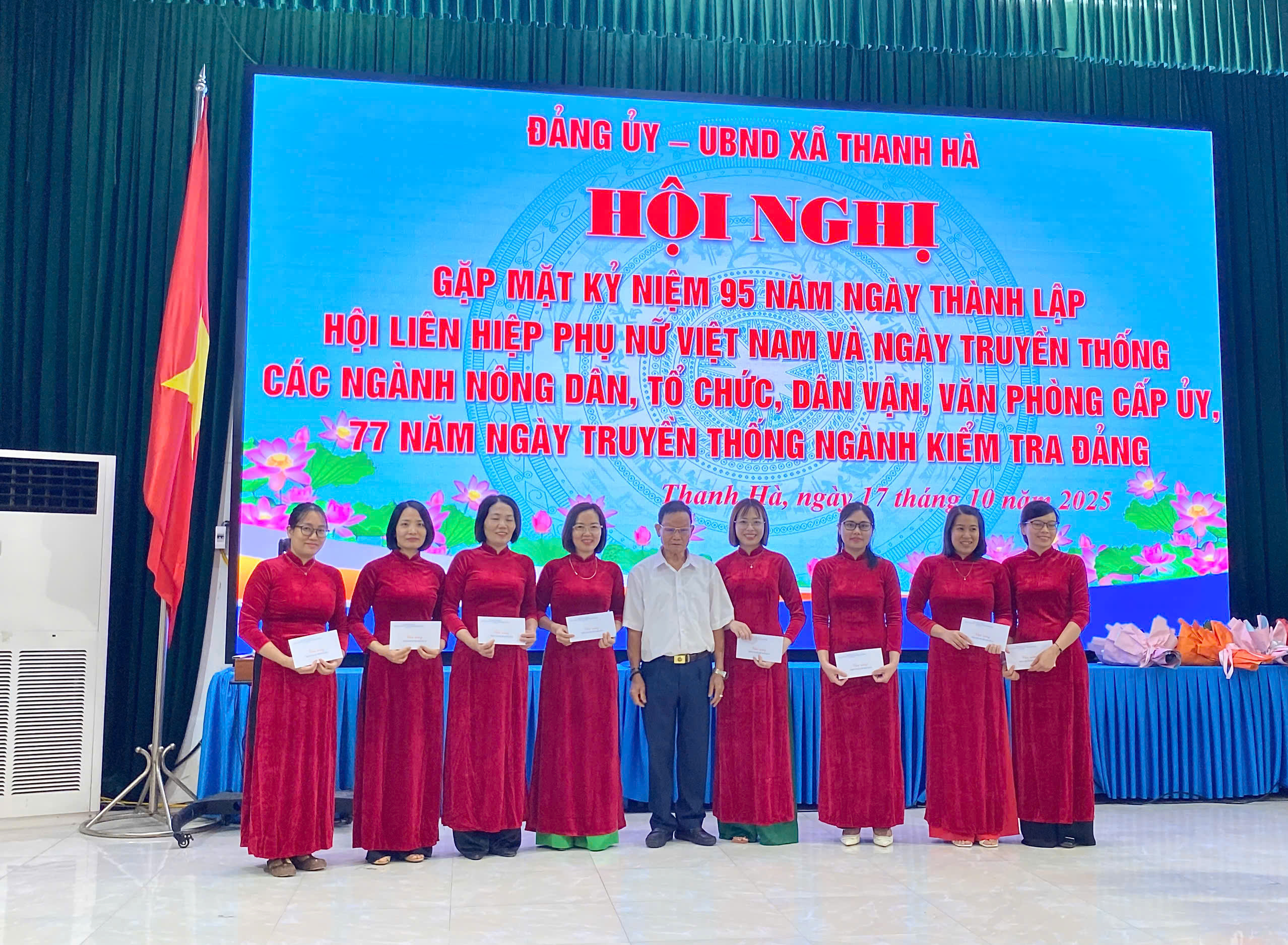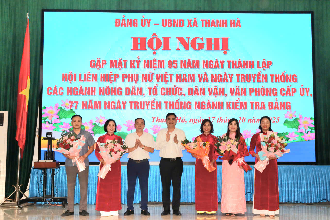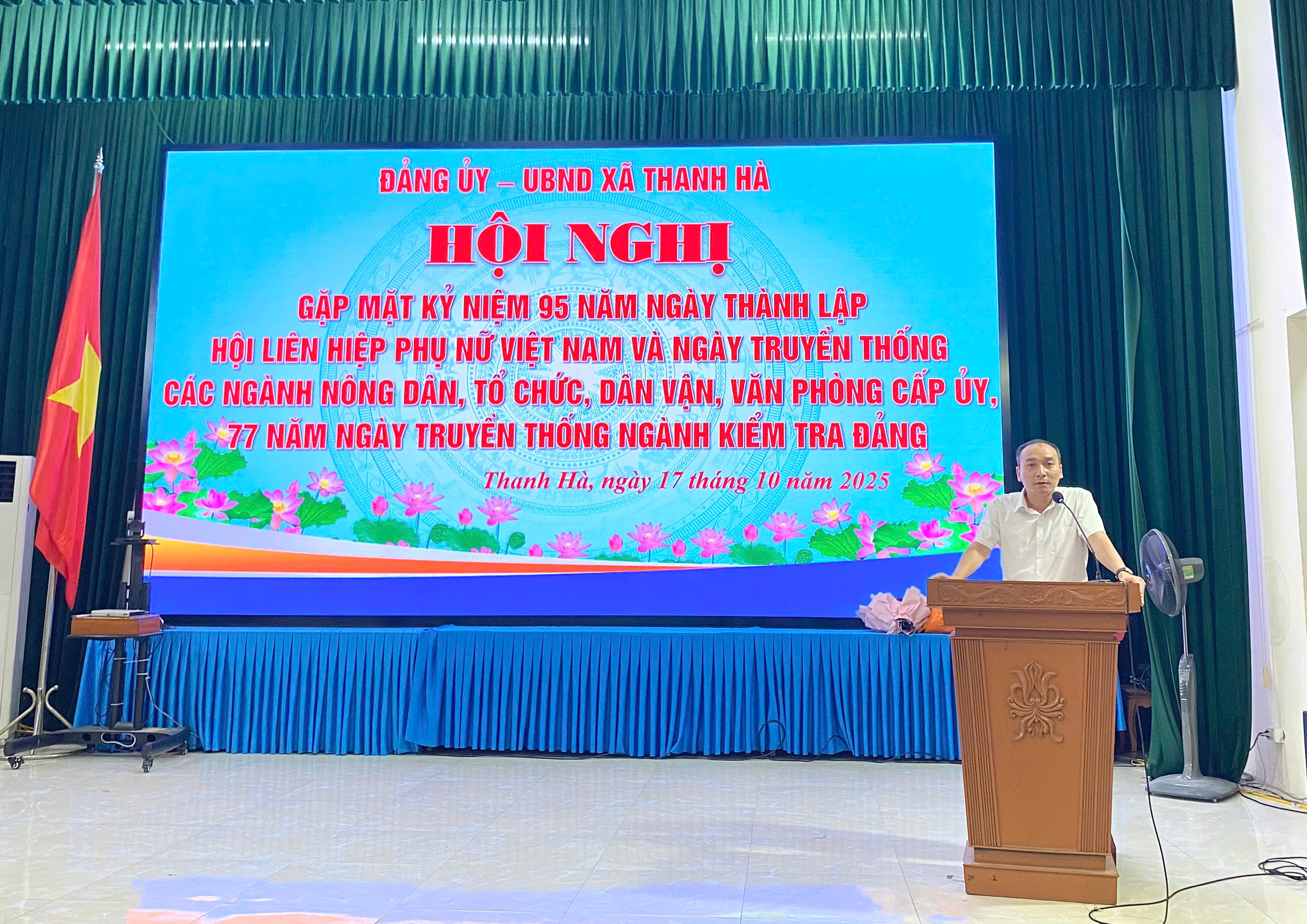 Chiều ngày 17/10, Đảng ủy - UBND xã Thanh Hà tổ chức hội nghị gặp mặt kỷ niệm 95 năm Ngày thành lập Hội Liên hiệp Phụ nữ Việt Nam (20/10/1930 – 20/10/2025) và Ngày truyền thống các ngành: Nông dân, Tổ chức, Dân vận, Văn phòng cấp ủy, cùng 77 năm Ngày truyền thống ngành Kiểm tra Đảng.
