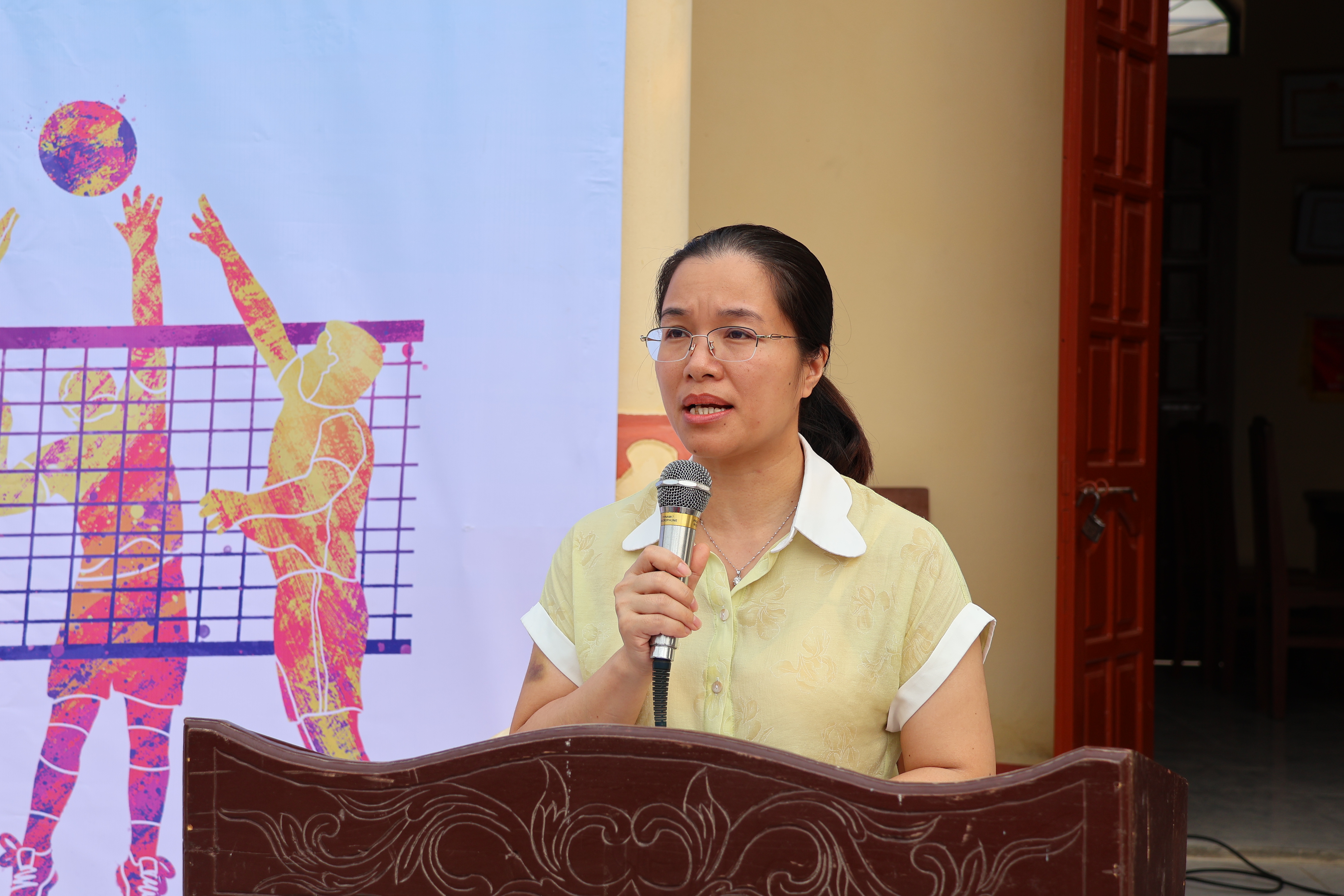 Đồng chí Nguyễn thị Thuý - Uỷ viên Ban Thường vụ Đảng uỷ, Phó Chủ tịch Thường trực UBND xã phát biểu khai mạc giải bóng