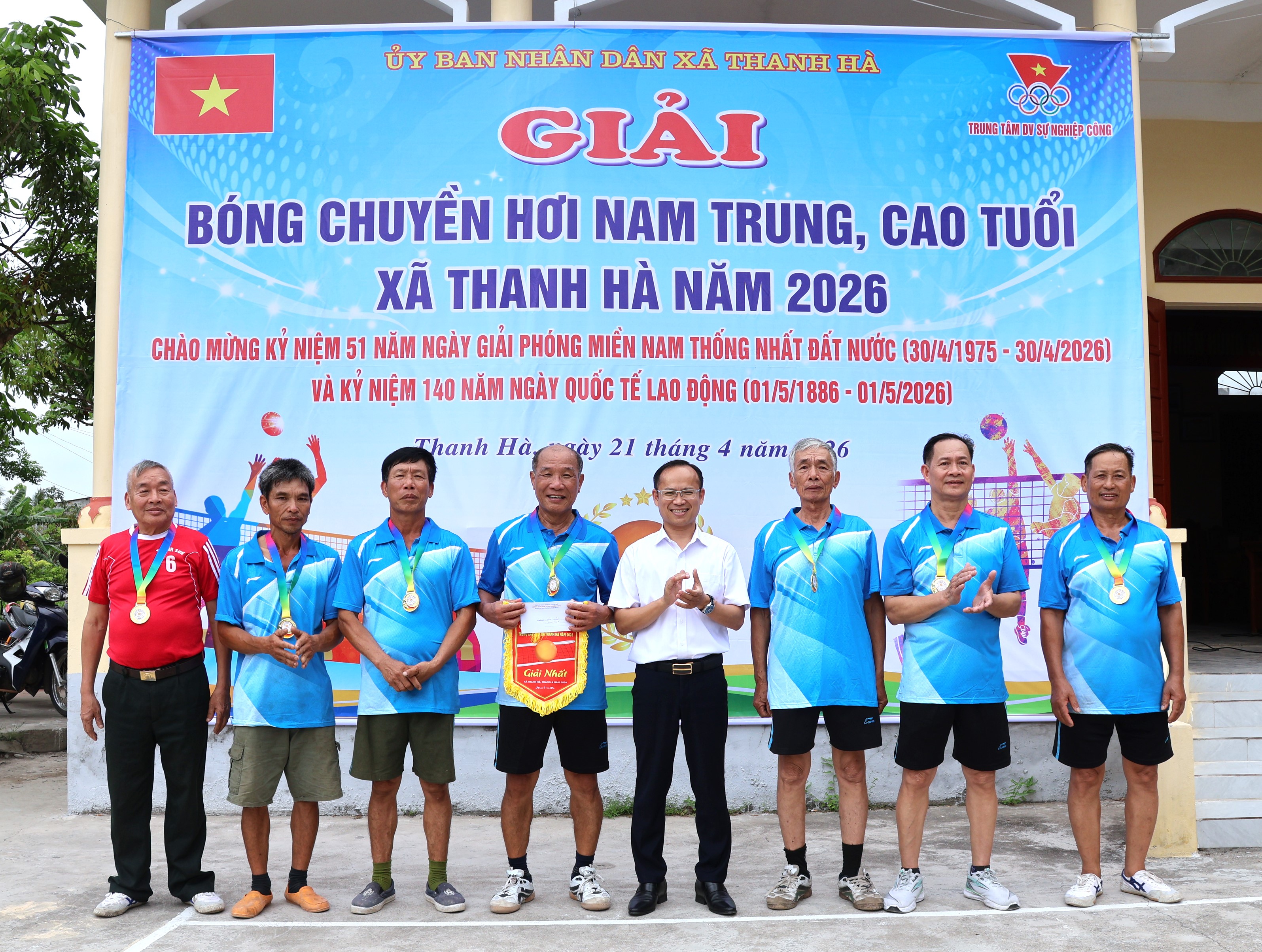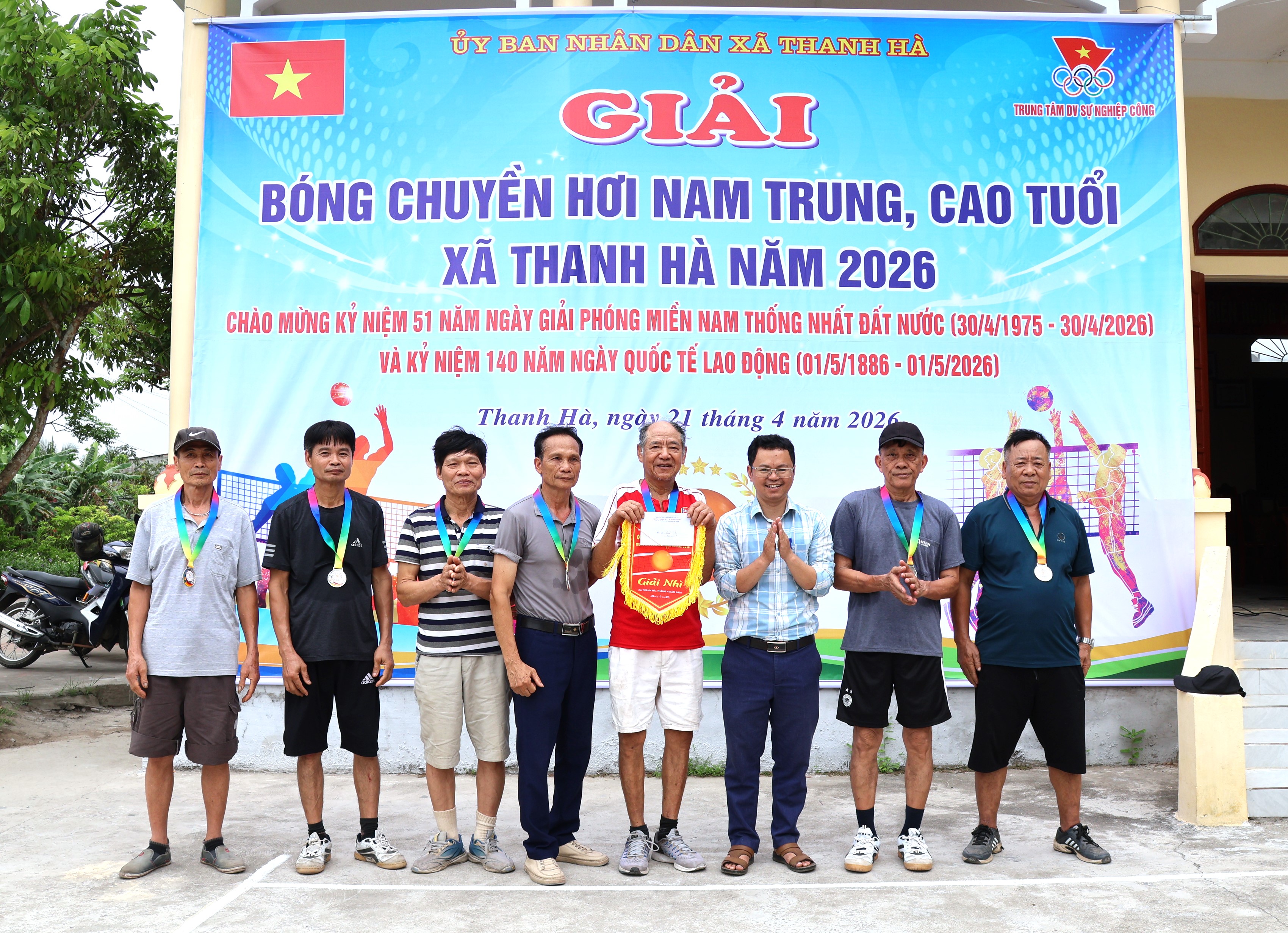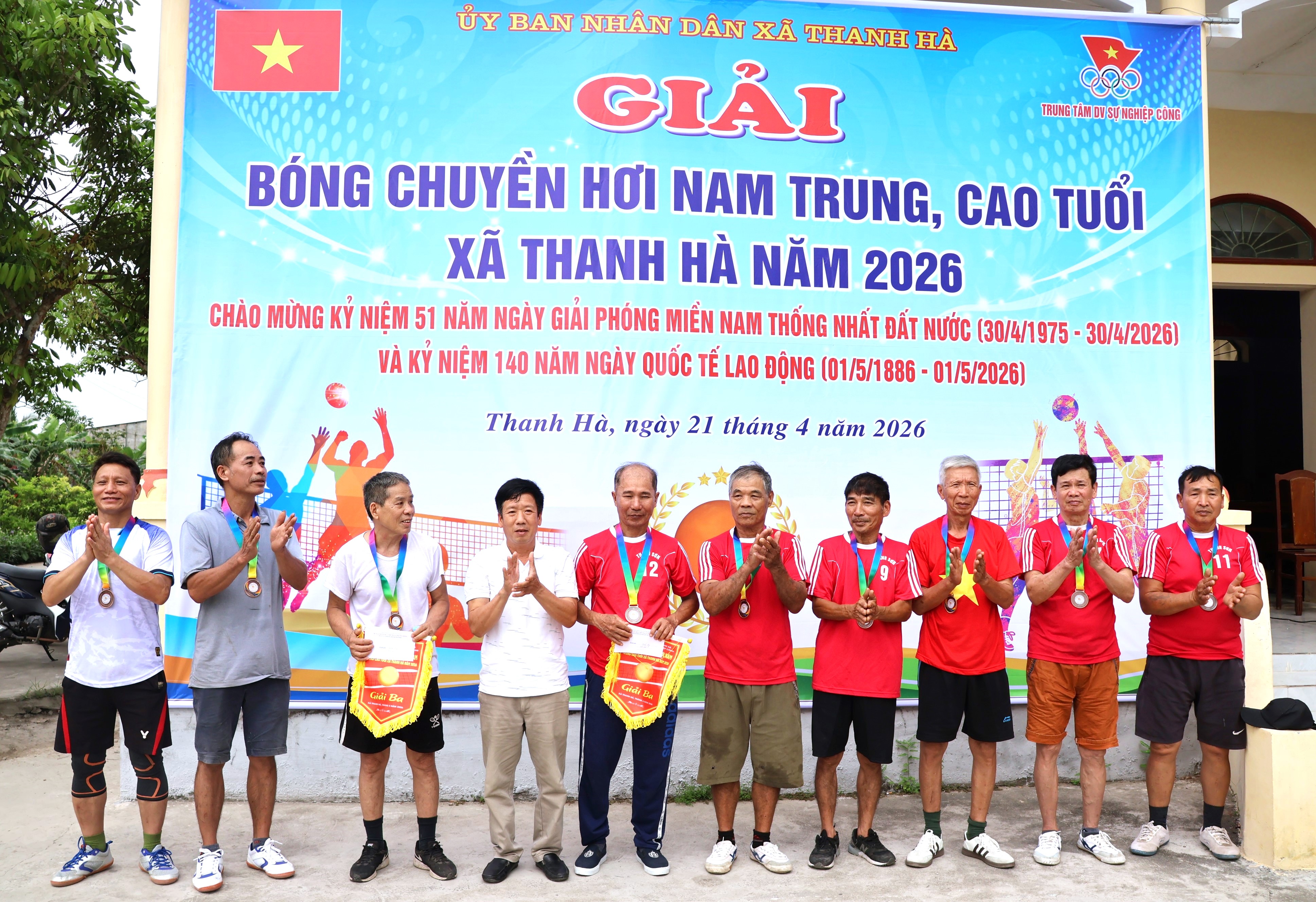Sáng 21/4, xã Thanh Hà tổ chức khai mạc giải bóng chuyền hơi nam trung, cao tuổi năm 2026. Đây là hoạt động thiết thực nhằm chào mừng kỷ niệm 51 năm ngày Giải phóng miền Nam, thống nhất đất nước (30/4/1975 – 30/4/2026) và kỷ niệm 140 năm Ngày Quốc tế Lao động (01/5/1886 – 01/5/2026), đồng thời góp phần đẩy mạnh phong trào rèn luyện thể dục thể thao theo gương Bác Hồ vĩ đại.
