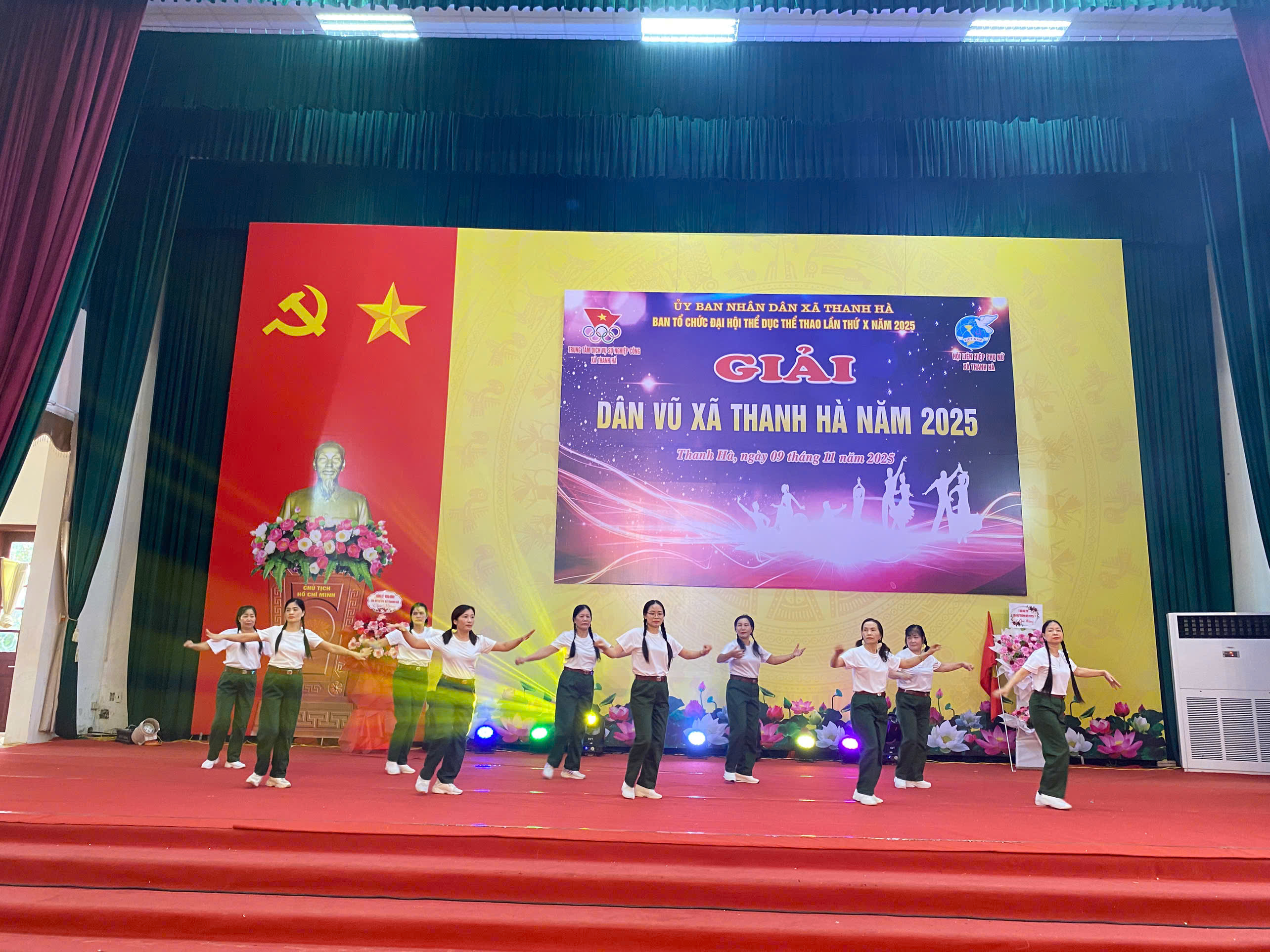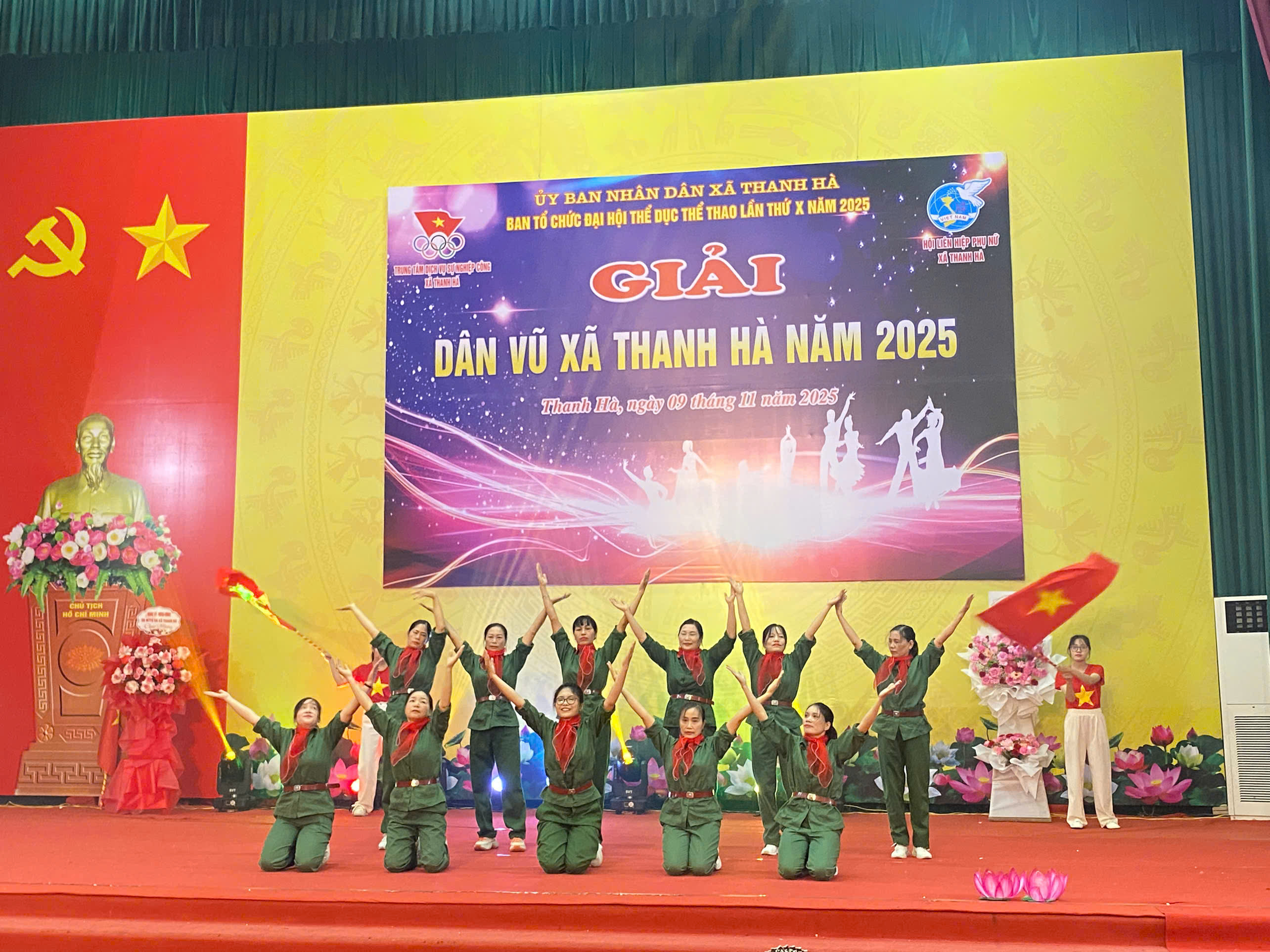 Tham gia Giải dân vũ năm nay có 16 đội đại diện cho các thôn trên địa bàn xã. Các đội biểu diễn đã mang đến nhiều tiết mục đặc sắc, được dàn dựng công phu có nội dung ca ngợi Đảng, Bác Hồ, quê hương, đất nước và tình yêu cuộc sống. Những bài nhảy khỏe khoắn, trẻ trung, tràn đầy năng lượng đã tạo không khí rộn ràng, gắn kết cộng đồng, lan tỏa phong trào rèn luyện thể thao nghệ thuật quần chúng trong Nhân dân xã Thanh Hà.