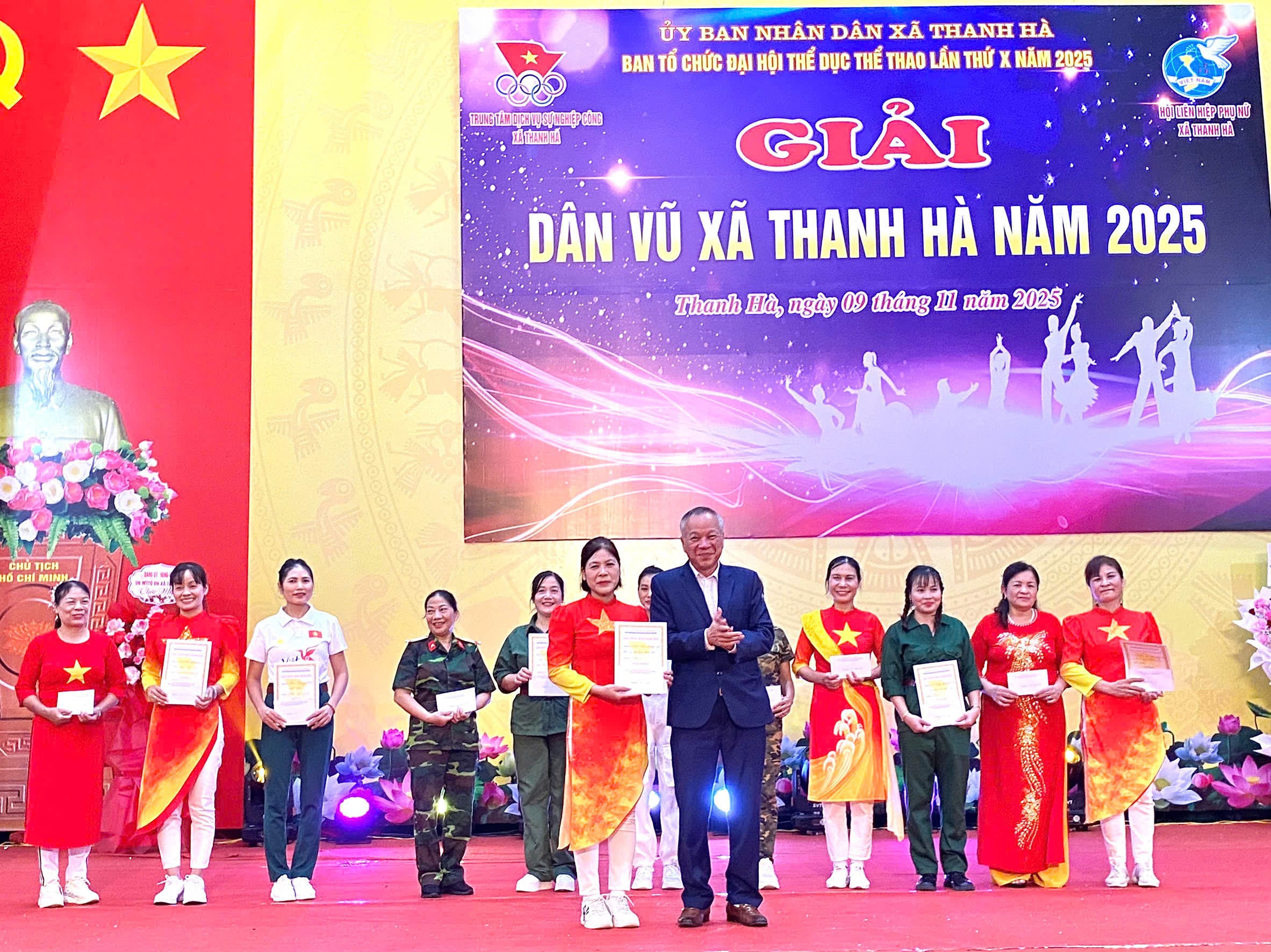 Sáng 9/11/2025, Ban tổ chức Đại hội Thể dục thể thao xã Thanh Hà lần thứ X tổ chức Giải dân vũ năm 2025. Tới dự và động viên giải có các đồng chí: Bùi Văn Khiêm, Phó Bí thư Thường trực Đảng ủy; Trần Duy Thược, Phó Bí thư Đảng uỷ, Chủ tịch UBND xã, Nguyễn Thị Thúy, Phó chủ tịch UBND xã, Trưởng BTC Đại hội TDTT xã.