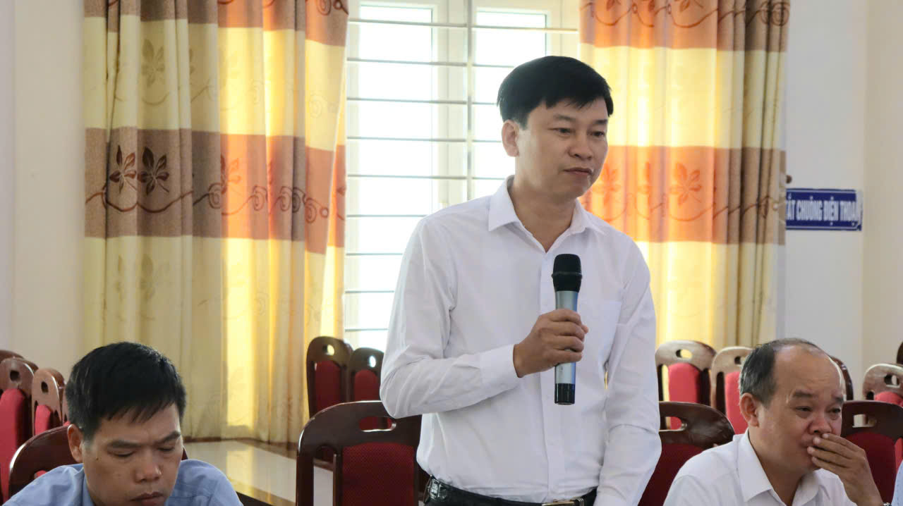 Đồng chí Trần Duy Thược, Phó Bí thư Đảng ủy, Chủ tịch UBND xã tiếp thu, giải trình một số nội dung tại hội nghị