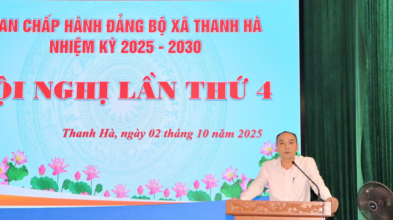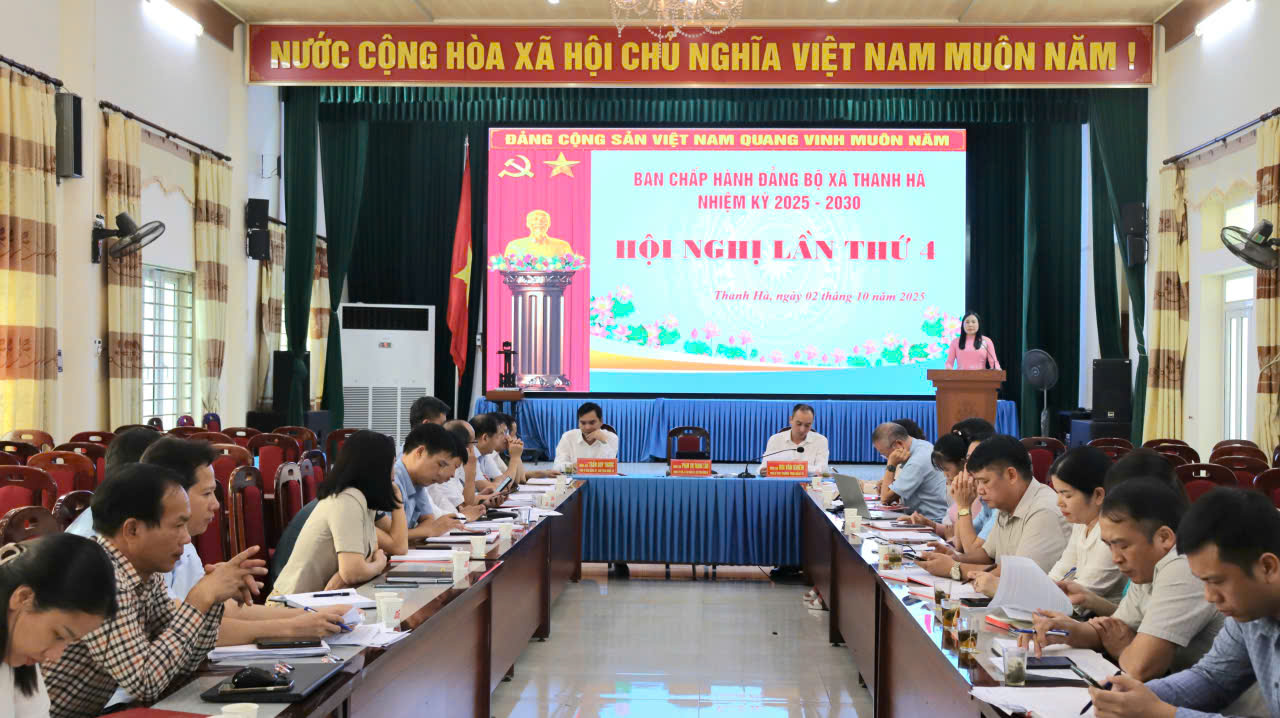Chiều ngày 2/10/2025, Ban Chấp hành Đảng bộ xã Thanh Hà nhiệm kỳ 2025- 2030 tổ chức hội nghị lần thứ 4. Dự và chủ trì hội nghị có đồng chí Phạm Thị Thanh Tâm, Ủy viên Thành ủy, Bí thư Đảng ủy, Chủ tịch HĐND xã. Cùng dự có các đồng chí Bùi Văn Khiêm, Phó Bí thư Thường trực Đảng ủy; Trần Duy Thược, Phó bí thư Đảng ủy, Chủ tịch UBND xã; các đồng chí trong Ban Chấp hành Đảng bộ xã; Lãnh dạo các phòng chuyên môn, lãnh đạo Trung tâm Chính trị xã.