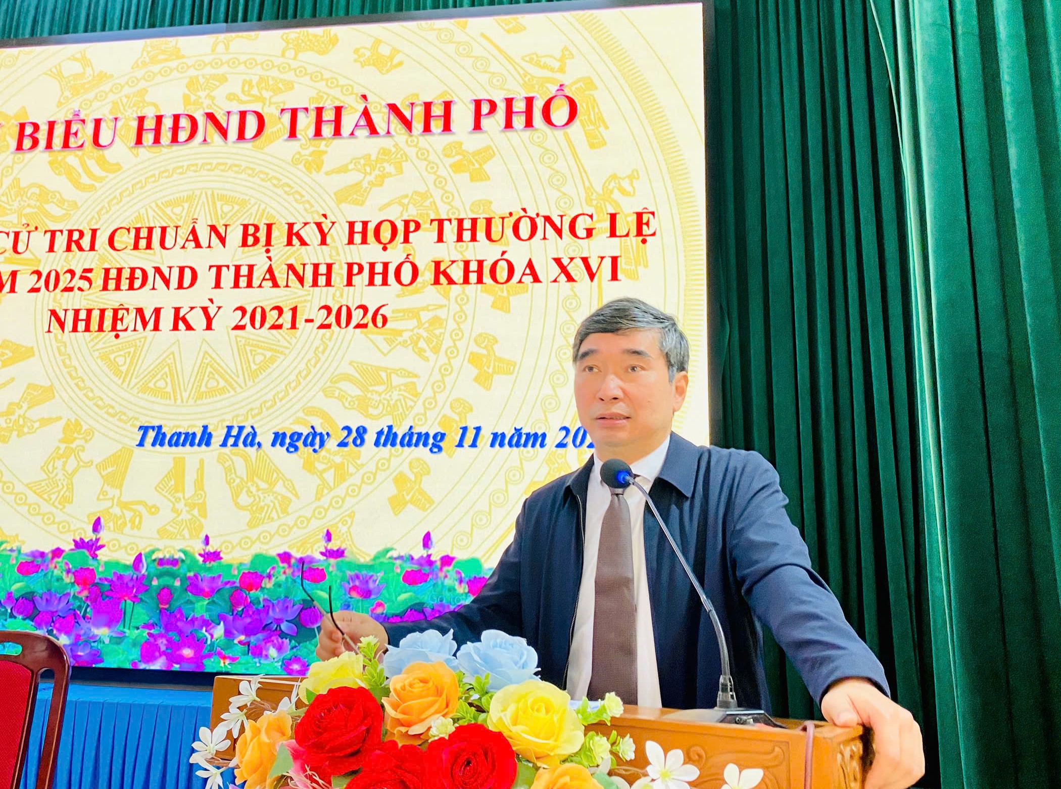 Tại hội nghị, các cử tri đã được nghe dự kiến nội dung chương trình kỳ họp thường lệ cuối năm 2025; báo cáo kết quả thực hiện nhiệm vụ kinh tế xã hội, quốc phòng an ninh năm 2025 và phương hướng năm 2026 của thành phố; báo cáo việc giải quyết các ý kiến, kiến nghị của cử tri tại kỳ họp thường lệ giữa năm 2025, HĐND thành phố khoá XVI…