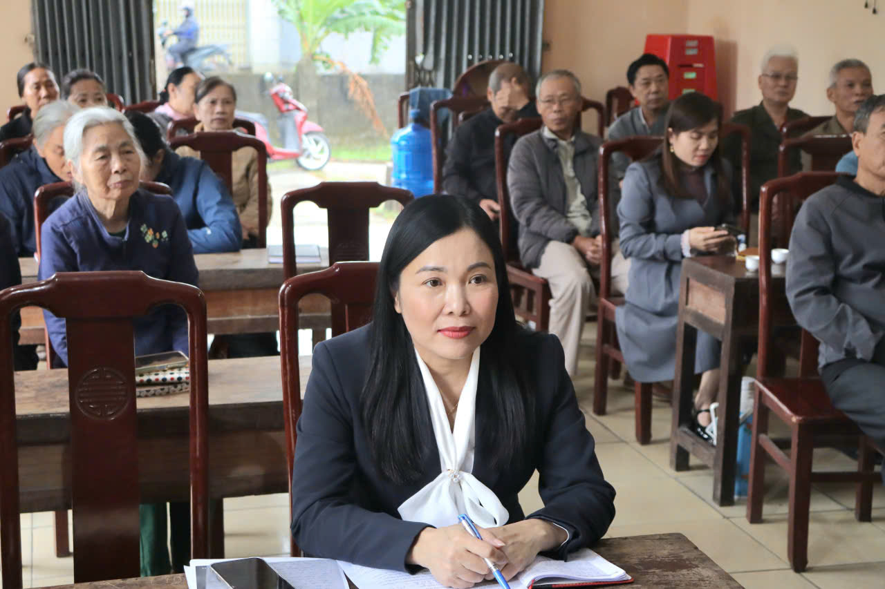 Đồng chí Phạm Thị Thanh Tâm, Ủy viên Thành ủy, Bí thư Đảng ủy, Chủ tịch HĐND xã dự họp sinh hoạt tại Chi bộ thôn 7