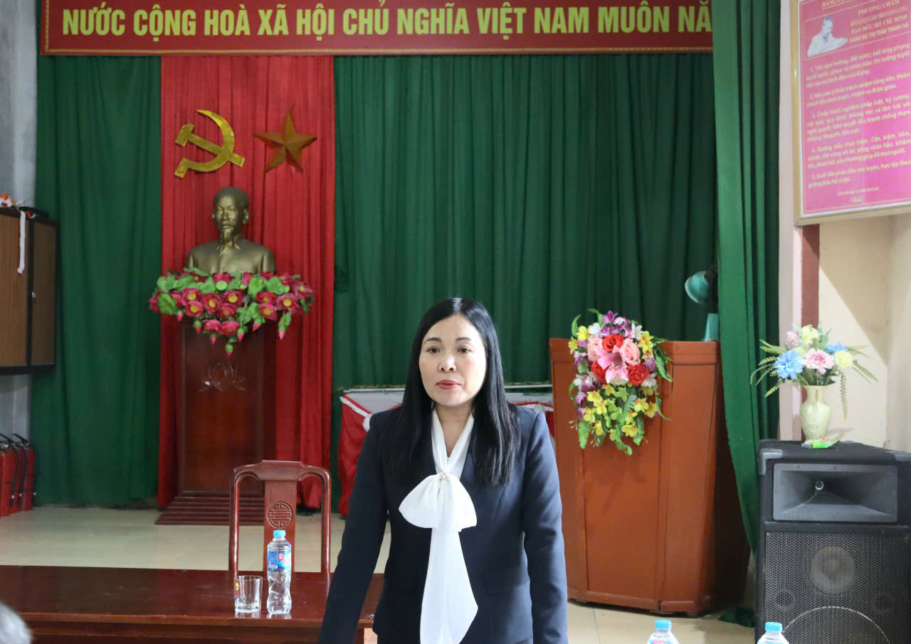 Đồng chí Bí thư Đảng ủy xã Phạm Thị Thanh Tâm phát biểu tại buổi sinh hoạt