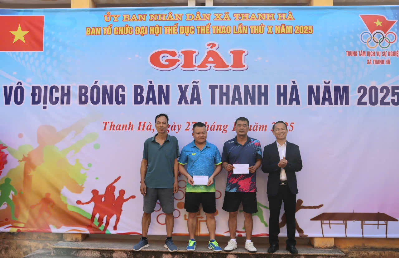 Giải vô địch bóng bàn xã Thanh Hà là môn thi thứ 7 trong tổng số 8 môn thuộc Đại hội TDTT xã Thanh Hà lần thứ X năm 2025, tiếp tục khẳng định tinh thần thể thao đoàn kết, rèn luyện và phát triển phong trào TDTT trên địa bàn xã.