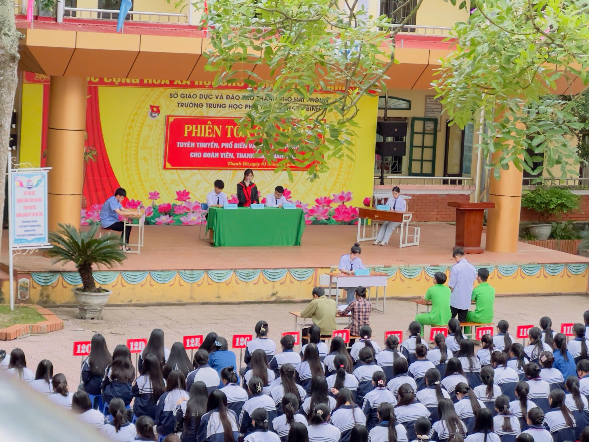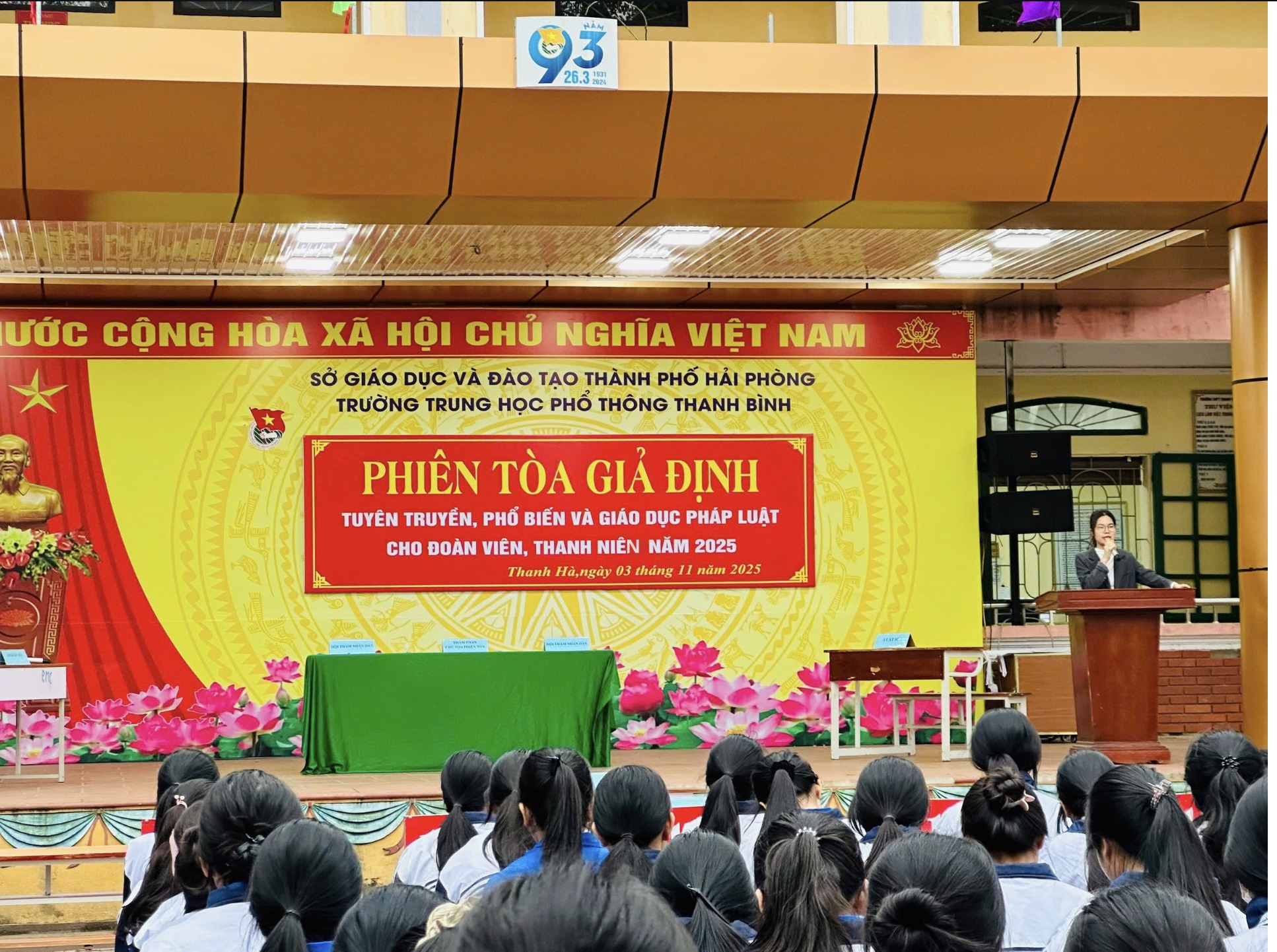 Sáng ngày 03/11/2025, dưới sự chỉ đạo của Đoàn xã Thanh Hà, Ban Chấp hành Đoàn trường THPT Thanh Bình tổ chức hoạt động “Phiên tòa giả định – Tuyên truyền, phổ biến và giáo dục pháp luật cho đoàn viên, thanh niên năm 2025” trong tiết sinh hoạt dưới cờ đầu tuần.