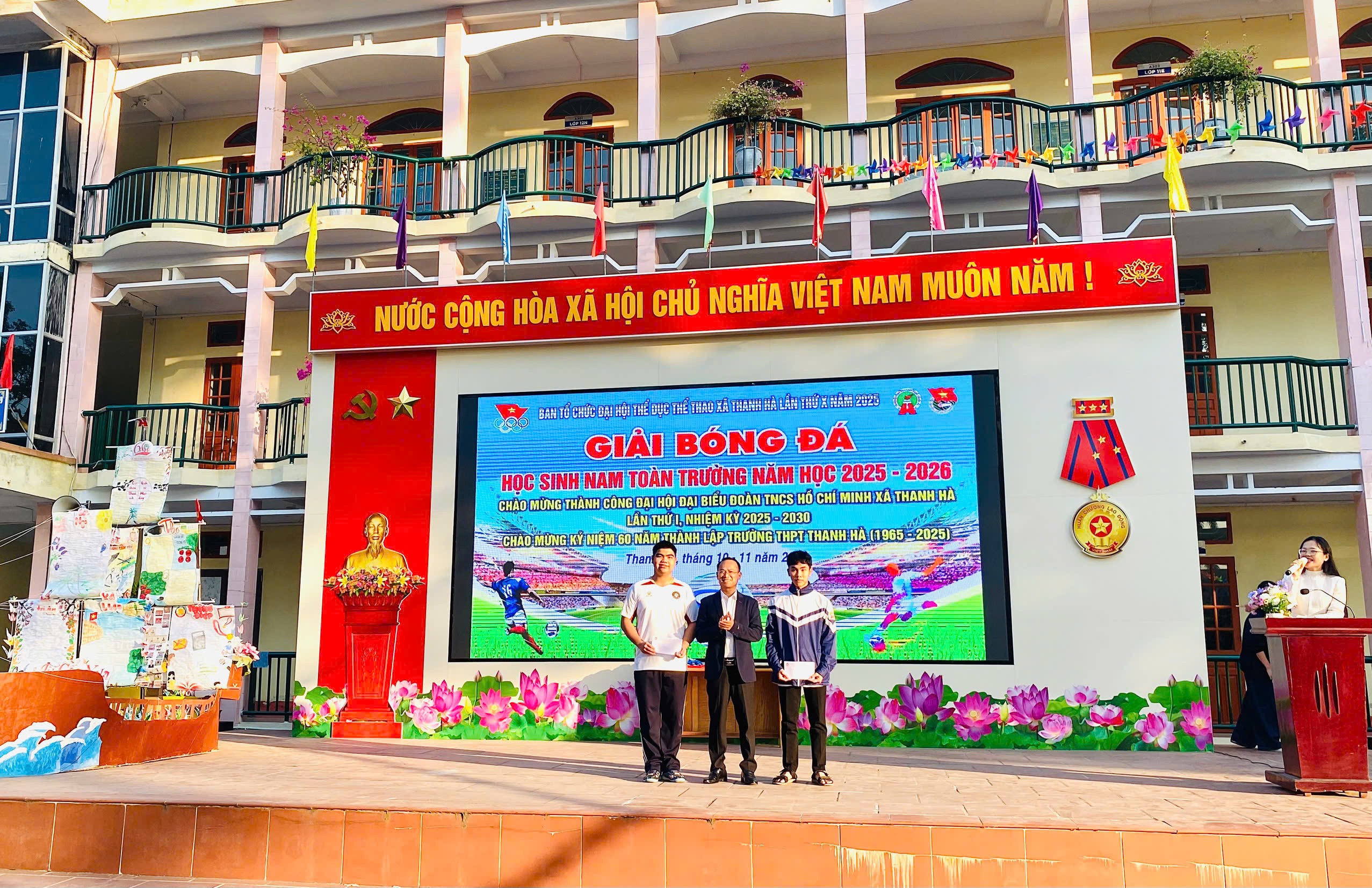 Sáng 24/11/2025, Ban tổ chức Đại hội TDTT xã Thanh Hà lần thứ X năm 2025, phối hợp với trường THPT Thanh Hà tổ chức trao giải bóng đá nam học sinh toàn trường năm học 2025-2026. Đồng chí Lê Văn Khoa, Giám đốc Trung tâm dịch vụ sự nghiệp công xã dự và trao giải cho các đội tuyển.