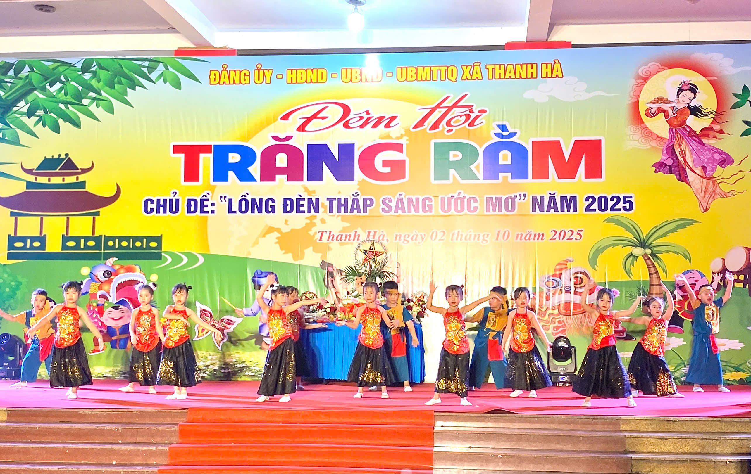 Hòa chung không khí vui Tết trung thu, tối 02/10 xã Thanh Hà đã tổ chức chương trình “Đêm hội trăng Rằm” năm 2025 với chủ đề “Lồng đèn thắp sáng ước mơ”. Về dự chương trình có các đồng chí: Phạm Thị Thanh Tâm, Ủy viên Thành ủy, Bí thư Đảng ủy, Chủ tịch HĐND xã; Bùi Văn Khiêm, Phó Bí thư Thường trực Đảng ủy; Trần Duy Thược, Phó bí thư Đảng ủy, Chủ tịch UBND xã; các đồng chí đại diện lãnh đạo HĐND, UBND, Ủy ban MTTQ Việt Nam, các ban ngành đoàn thể, cùng đông đảo các em thiếu nhi và nhân dân trong xã.